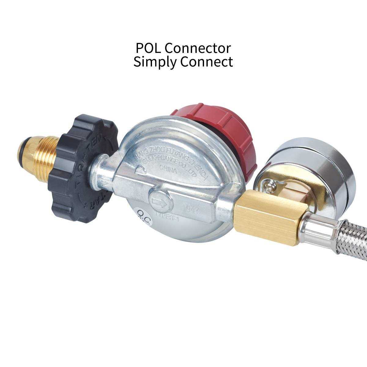 Generep Adjustable Propane Tank Regulator 0-30 PSI,12 Foot High Pressurepropane Hose with Gauge/Indicator,More Durable Stainless Steel Braided Gas