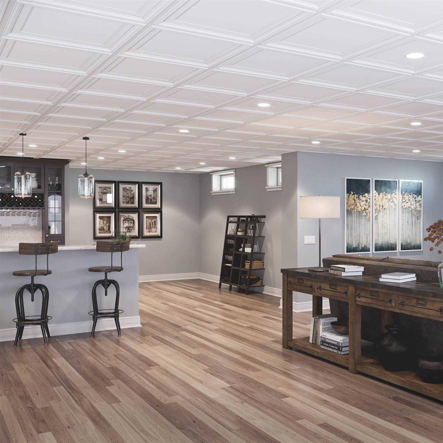 Genesis Icon Coffer Ceiling Tiles are made from waterproof, vinyl material that prevents many of the issues caused with acoustic ceiling tiles. Our tiles are manufactured from white cellular PVC and have a Classic surface, making them not only waterproof, but washable and durable. Genesis tiles are made from material that is not susceptible to health hazards resulting from water and moisture. These suspended ceiling tiles have a Class A Fire Rating and are perfect for homes, basement ceilings, laundry rooms, commercial kitchens, food processing plants, healthcare and education facilities, marine applications, and high-humidity climates. Easy to cut and easy to install, our drop ceiling tiles are a great alternative to fragile and water damage-prone acoustic ceiling tiles or styrofoam ceiling tiles. Choose Genesis for a polished ceiling and a healthier you.