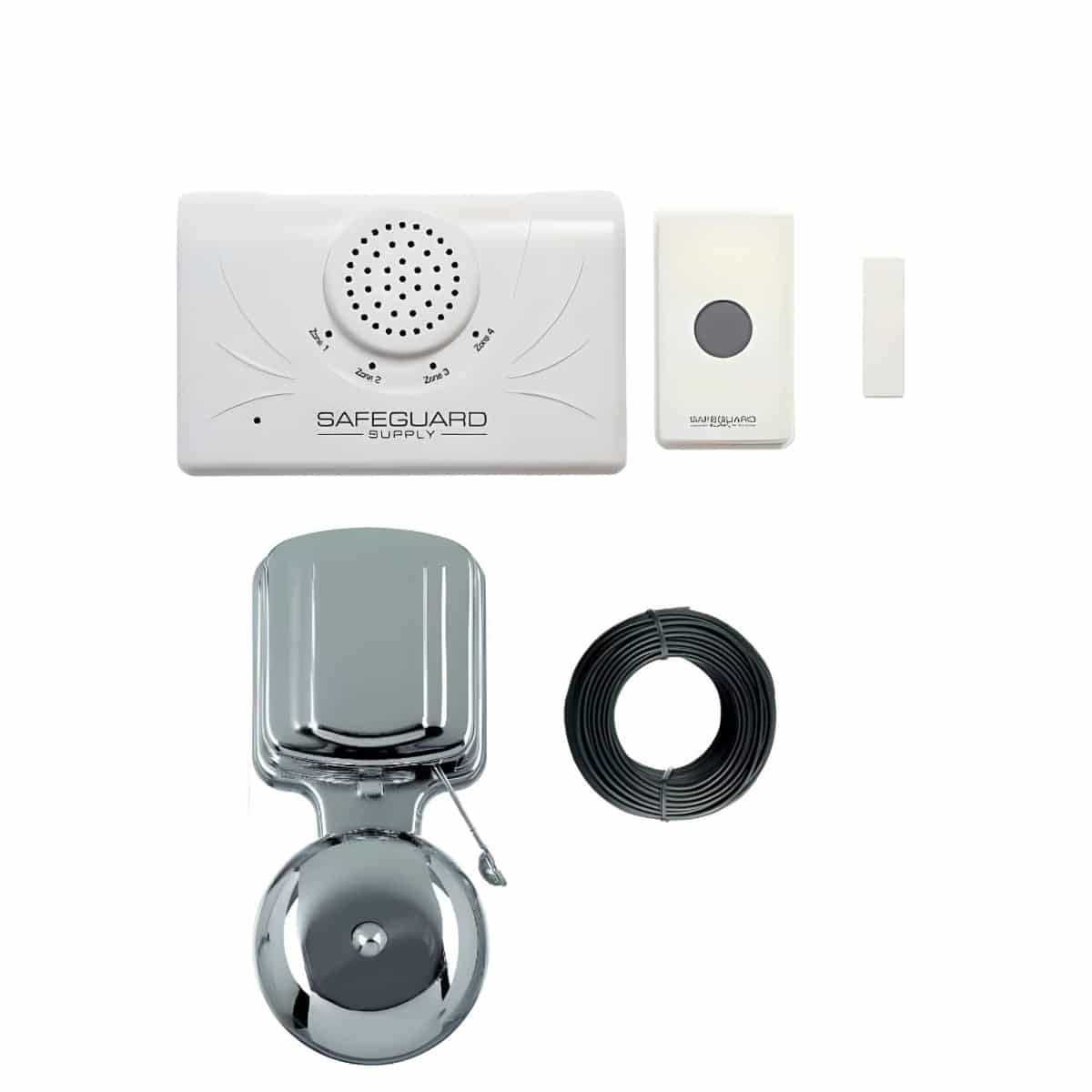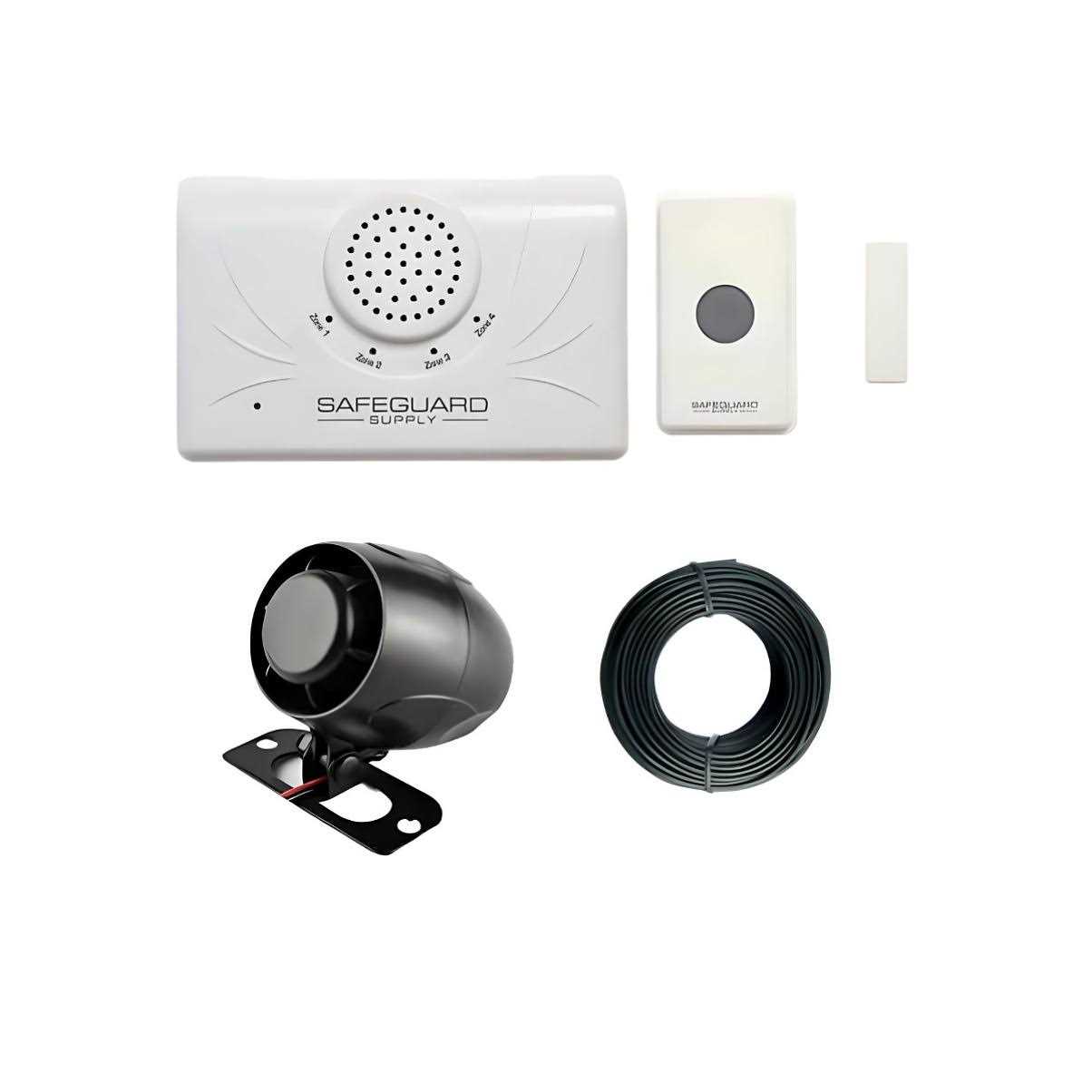 Our popular Warehouse Kit includes your choice of a 12VDC accessory to increase the listening range. The 12V DC accessories featured in this kit have sound levels from 90dba to 115dba. These accessories work by connecting to the 12V DC outputs located on the receiver.This is a terrific product when you have a larger area or an especially loud workshop. Add more receivers to this kit so that offices within the workspace can have chime sounds (with volume control) while using the loud accessories in the workshop.
