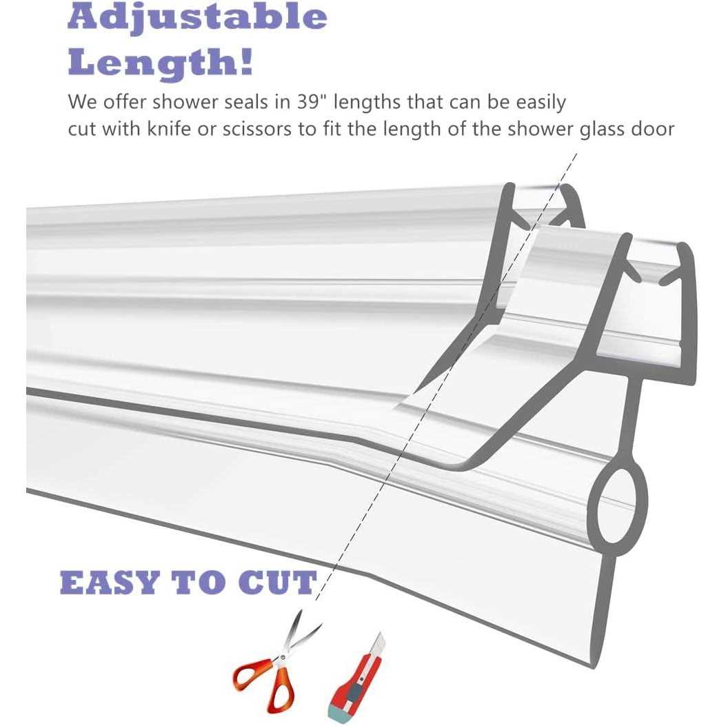 The 22mm bottom seal strip can cover a larger gap the shower screen. which means your bathroom will look clean and dry even after a long shower. HIGH QUALITY: The glass door seal is made of durable Clear Vinyl material, The transparency is close to glass and will not change color, The sweep at the bottom of the seal is soft and can make the door move more smoothly without noise. WATER LEAKAGE PREVENTION: shower door replacement parts is soft and flexible, even if your gap is lesser than expected(22mm), the seal will simply bend and block the water from going out. You can also cut off the soft edge of the bottom seal to fit the gap between the shower screen and the floor. ADJUSTABLE LENGTH: 39 inch extra long shower seal strip for 1/4 inch thick glass doors which can easily be adjusted with the majority of the shower doors, with the long Drip Rail can Prevent water Leakage and the Waterproof Seal Sweep Creates a water Barrier. EASY TO INSTALL: Installation takes just minutes, Remove the discolored old seal strip from the door, place the new The shower weather strip under the glass door, and then first push it up from the side closest to the hinge until the seal grips to the glass. Keep your bathroom looking great and free from water leaks with this GEZMR frameless shower door bottom seal. Made of high-quality Clear Vinyl material, Clear and has the appearance of colorless glass, which is completely suitable for various bathroom styles. it’s designed to attach to the bottom of frameless,swinging shower doors without glue. 45° sloped angle drip rail together with water-resistant fins creates a tight seal to prevent water leakage to the bathroom floor. Use it to replace discolored and moldy shower door seals or leaky,unreliable seals.Installation takes just minutes and does not require any glue or adhesive. The shower door bottom seal fits a 1/4” x 39” swinging shower door. but can easily be cut to fit a shorter door with a hacksaw, tin snips or utility knife. The professional manufacturer of shower seals.”