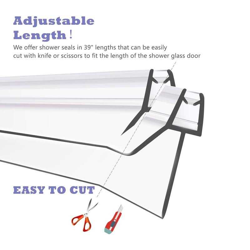 Keep your bathroom looking great and free from water leaks with this GEZMR frameless shower door bottom seal. Made of high-quality polycarbonate material, Ultra-clear and has the appearance of colorless glass, which is completely suitable for various bathroom styles. it’s designed to attach to the bottom of frameless,swinging shower doors without glue. 45° sloped angle drip rail together with water-resistant fins creates a tight seal to prevent water leakage to the bathroom floor. Use it to replace discolored and moldy shower door seals or leaky,unreliable seals.Installation takes just minutes and does not require any glue or adhesive. The shower door bottom seal fits a 1/4” x 39” swinging shower door. but can easily be cut to fit a shorter door with a hacksaw, tin snips or utility knife. The professional manufacturer of shower seals.