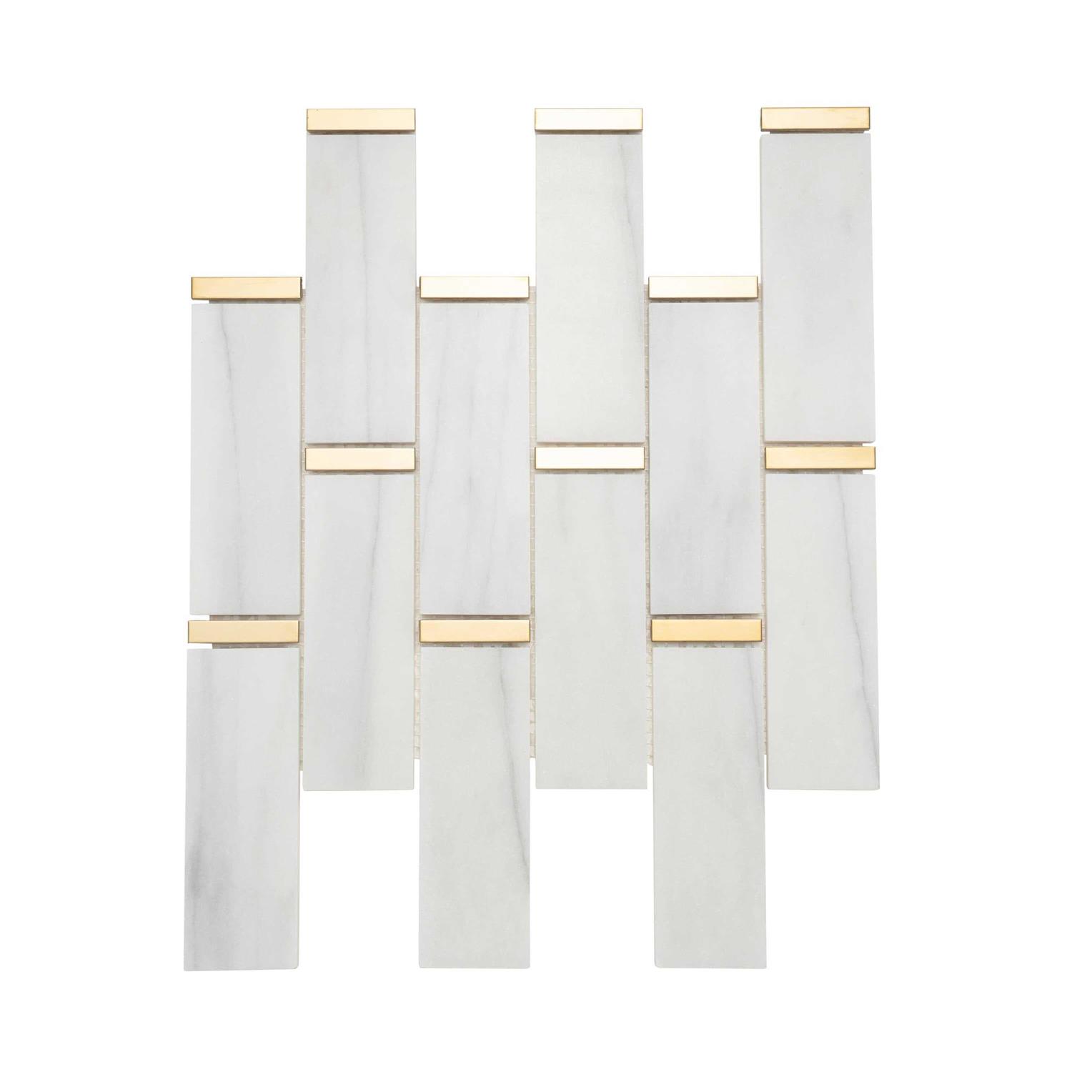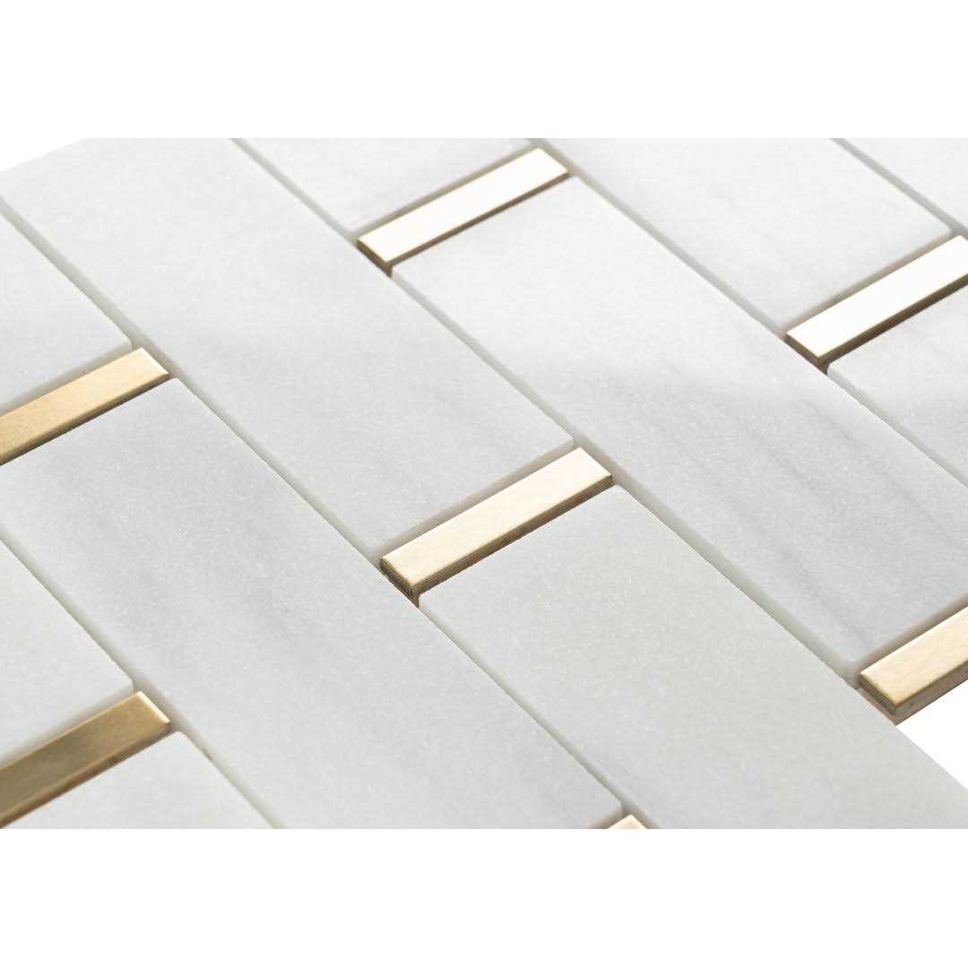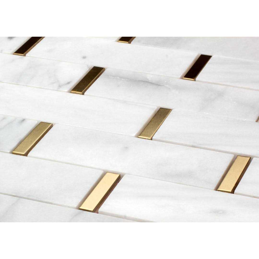 Giorbello White Marble and Gold Steel Trim Subway Mosaic Tile 11x 11.75