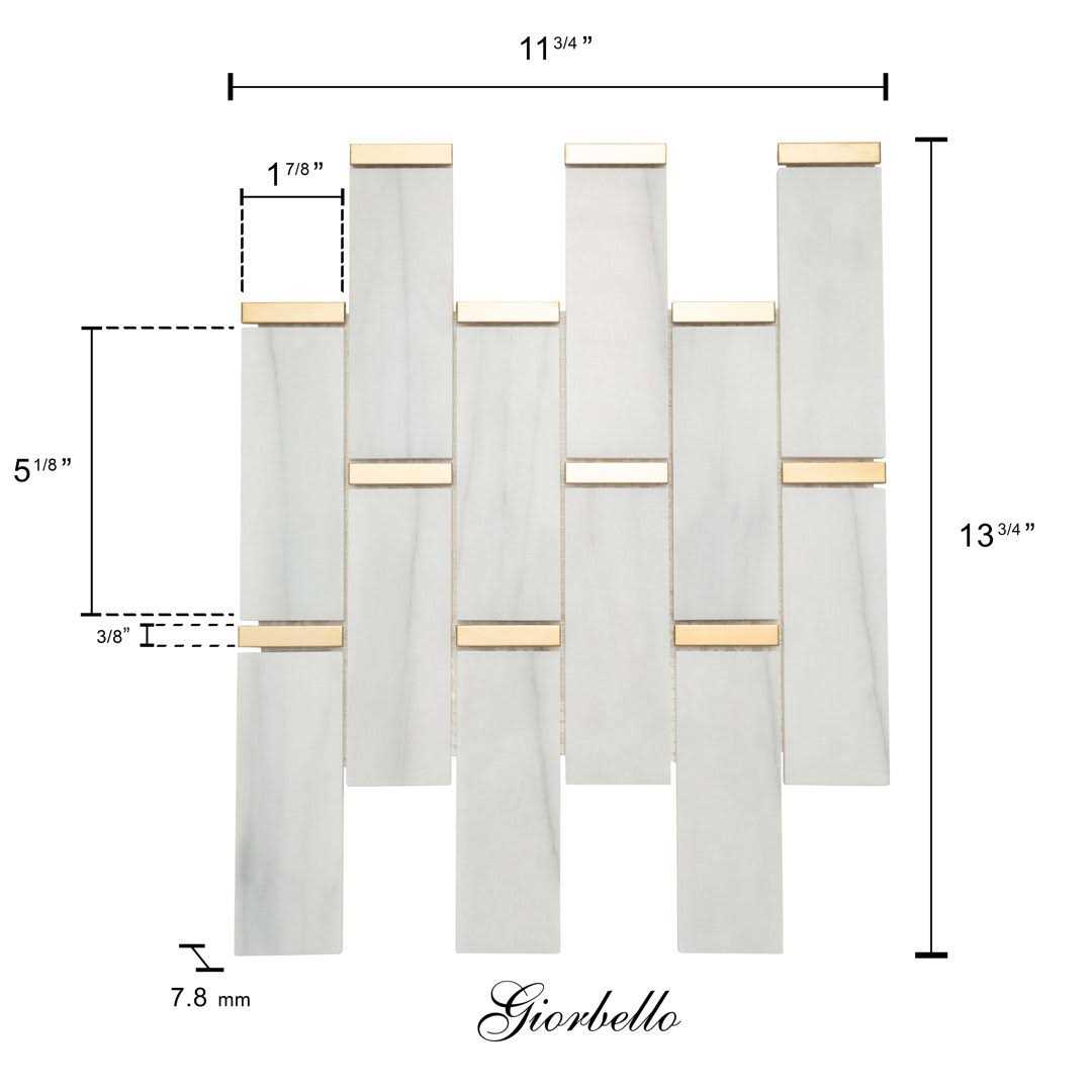 Giorbello White Marble and Gold Steel Trim Subway Mosaic Tile 11″x 11.75″ (4.8 Sq. ft.)