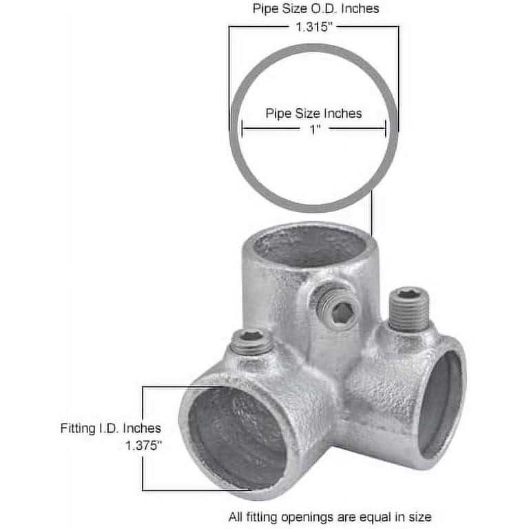 Global Pipe Fitting Side Outlet Elbow 1″ Diameter Side Outlet Elbow Pipe Fitting provides a three way joint when building pipe hand railing, guard rail or other pipe-based structures. Typically found on the top hand rail, a side outlet elbow can also be used as a corner joint for benches, work tables or other rectangular structures. Strong iron material includes a galvanized finish for corrosion resistance and long term use. Fitting locks onto 1″ diameter pipe with hardened set screws (included) for secure connection. Anchor hole is slightly larger than ” diameter.