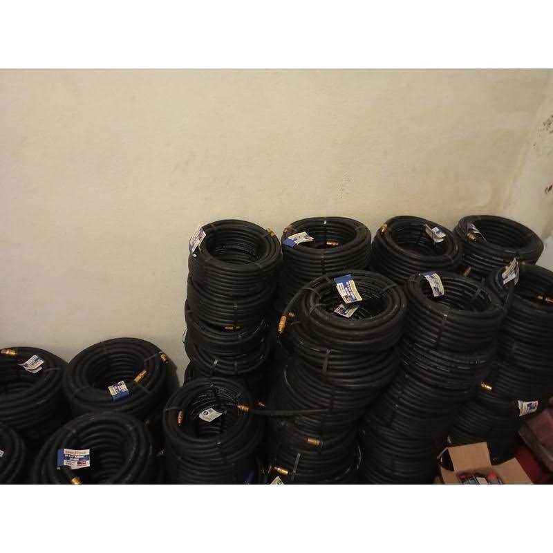 Weather, oil, and solvent resistant outer coating. Solid brass, 1/4″ NPT end fittings. Spiral synthetic yarn reinforcement. Maximum operating pressure – 250 PSI. Maximum burst pressure – 1070 PSI.