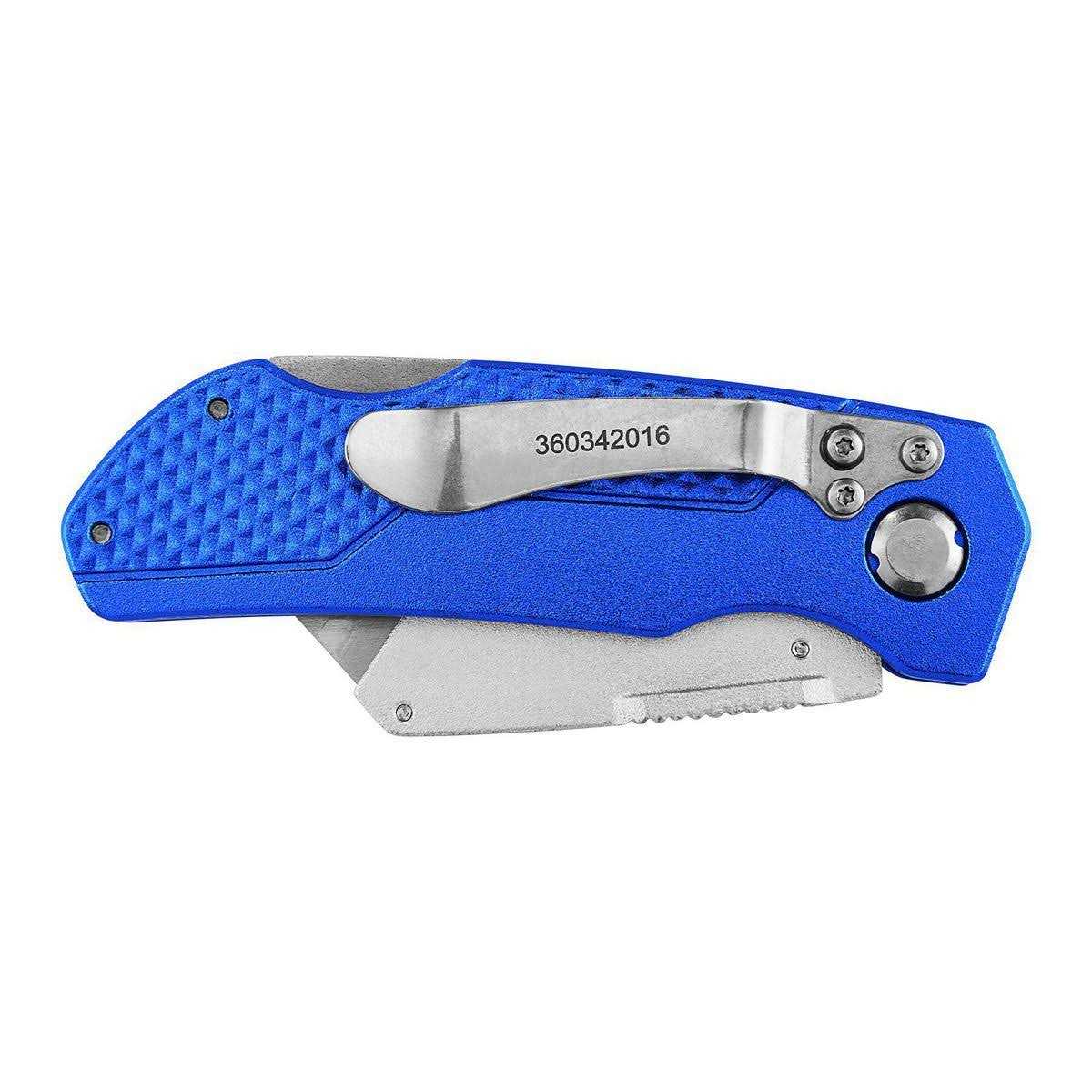 This utility knife features simple one-hand operation for easy use. The lightweight aluminum construction and removable clip for multiple carry options. Quick-change mechanism for fast blade changes.