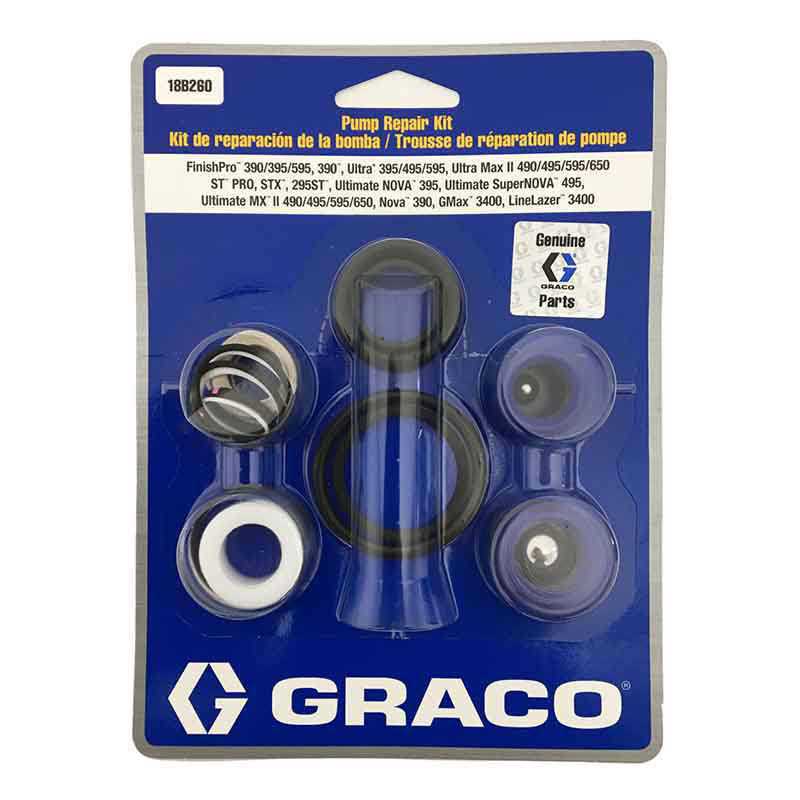 Graco Genuine Pump Repair Kits that come complete with instructions and a parts list. These Kits will allow your to repair your Graco Airless Sprayer Pump if the Pump packings need to be replaced. Genuine Kits at a great price. Get your Graco Airless Sprayer back in perfect working order.