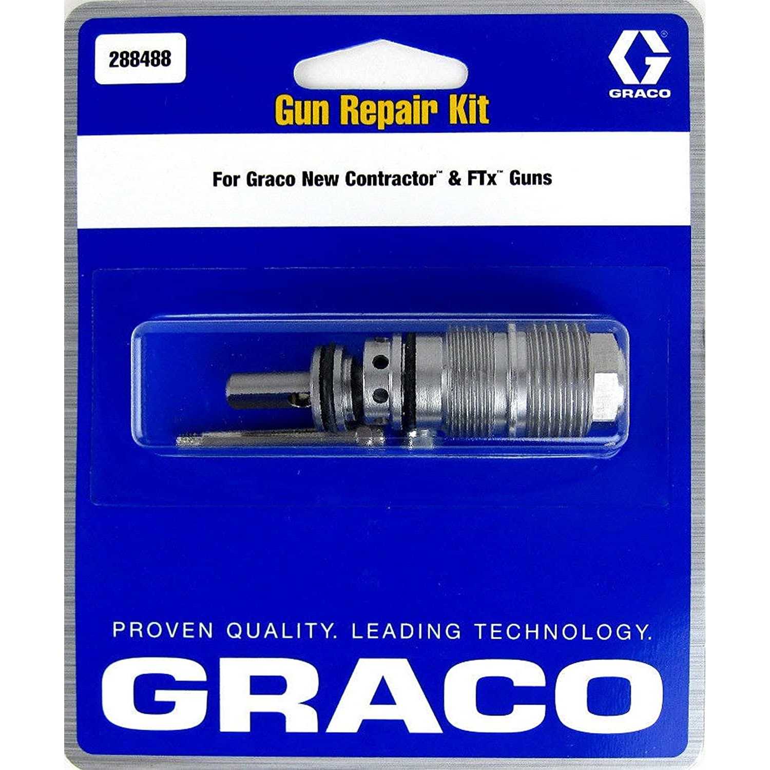Graco Genuine OEM part 288488 Airless Gun repair kit is for the New-Style Graco Contractor and FTx Guns. Your gun part# should begin with 288-### based on the specific model.
