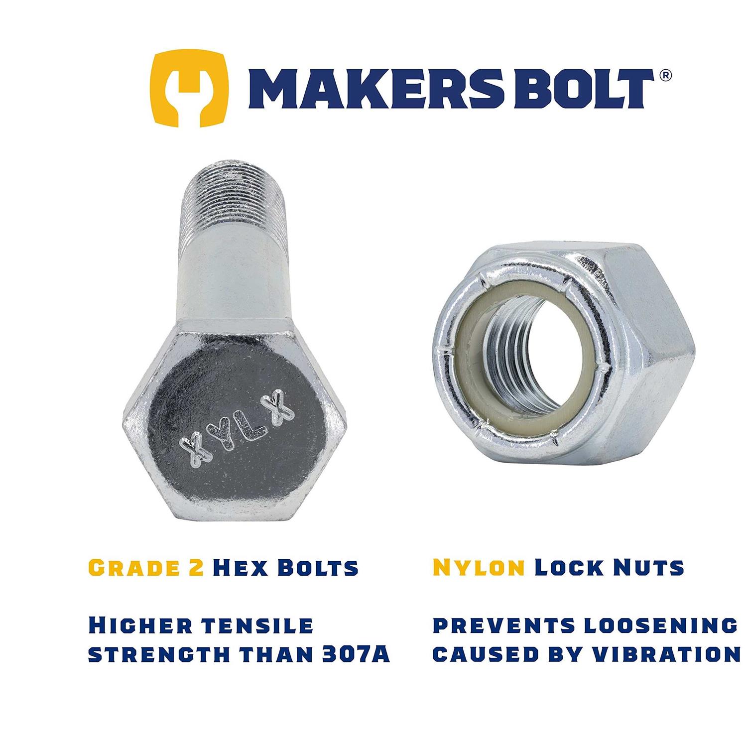 Mill certified Grade 2 SAE J429 shear bolts, stronger than typical hardware store ASTM A307 bolts. Nyloc nut prevents loosening from vibration. Kit includes 5 shear bolts and 5 nylon locknuts. Universal Size for Rotary Cutters: 1/2″ Diameter, 3-1/2″ Length. Compatible with most rotary cutters such as Bush Hog and King Cutter. Zinc (Cr+3) RoHS compliant finish prevents corrosion.
