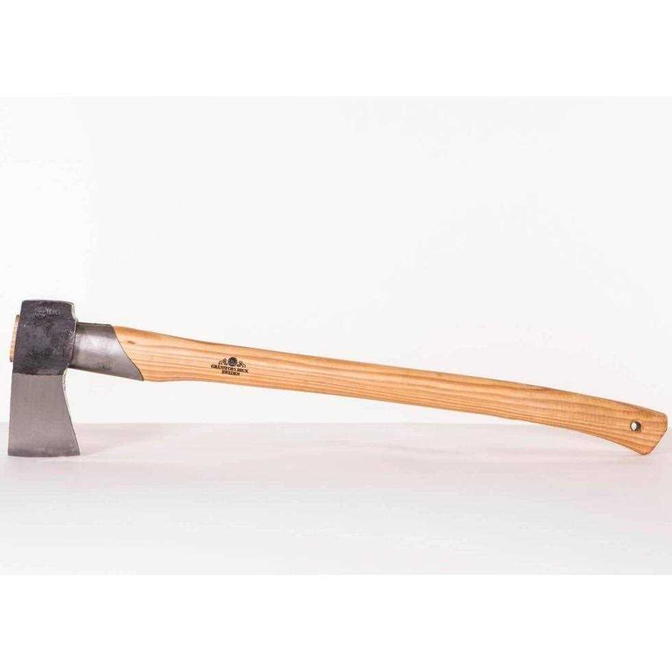 Gransfors Bruk Large Splitting Ax W Cg – Gransfors Bruk Splitting Axe cuts quickly and easily into the wood and then effectively splits it as the broader section pushes apart the wood. The handle has a protective steel collar below the axe head and circular grooves towards the end for an extra firm grip. There are two models available. Model 441 is a small splitting axe that can be used for medium-sized firewood. It weighs 3.5 pounds and length with handle is 23 inches. Model 442 is a large splitting axe that can be used for splitting all types of firewood. It weighs 5 pounds and length with handle is 27.5 inches. Both model axes are forged and ground to a concave thin blade at the bit. Sheath is made of vegetable-tanned leather.