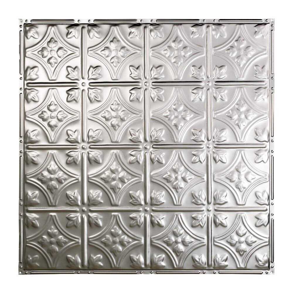 Great Lakes Tin Ceilings provide the classic look of yesteryear with authentic recreations that make a lasting impression in any space. The ceiling tiles are available in both nail-up and lay-in options in 10 styles and 10 finishes. The nail-up tiles are easily applied with nails, screws or glue. Finish options range from antique or gloss white to bronze burst and copper offerings. Two crown molding styles are also available and provide a finished look to your project. Panels can be cut with tin snips and allow homeowners to achieve a professional look at an affordable price. Great Lakes Tin ceiling tiles are available in 2-foot x 2-foot tiles, covering 4 square feet, for easy installation. They are made of 29-gauge tin-plated steel and the panels and accessories are Class A – 1 hour fire rated. The tiles are ideal for kitchens, dining rooms, bedrooms, halls or any space you want to make an impression. Color: Silver.