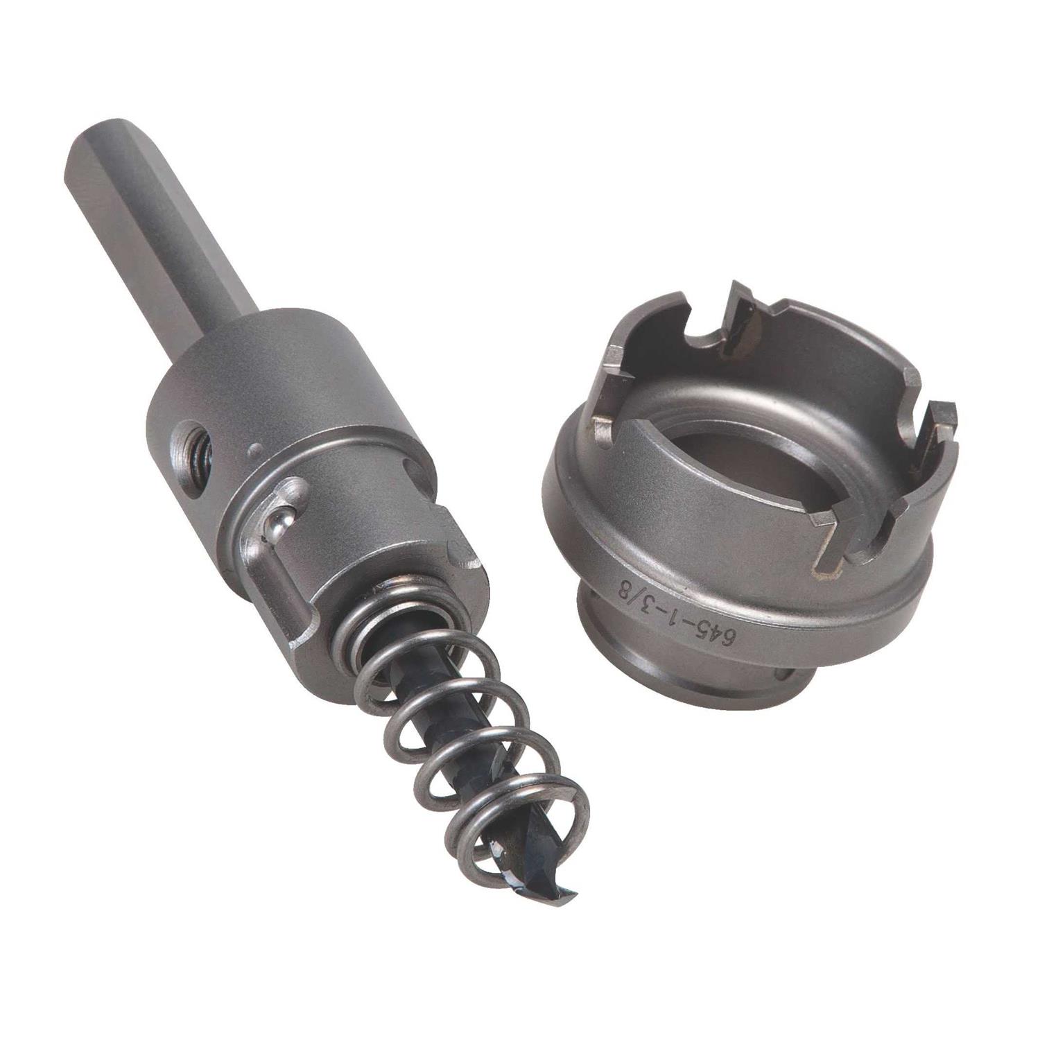The Greenlee 655 Carbide Hole Cutter Kit is part of Greenlee’s premium collection of tools and accessories. This cutter kit is designed with a flange stop that prevents over-drilling. It’s replaceable cobalt-steel pilot drill with split-point tip to prevent walking, and precision carbide teeth for optimum performance and durability.