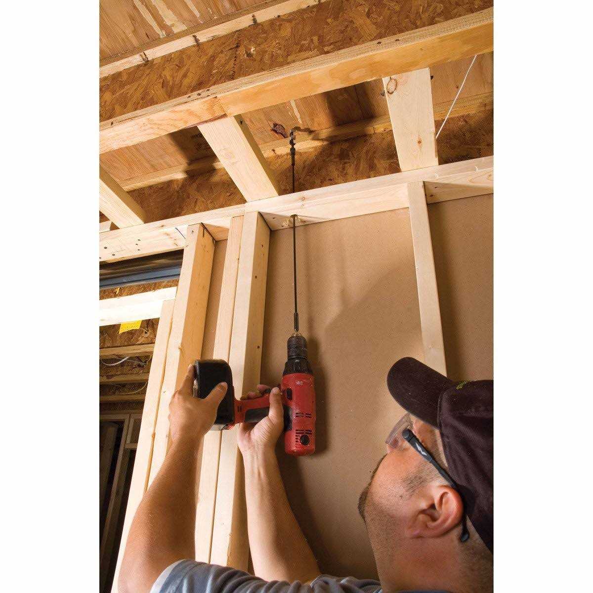 Quick Change Drill Bit Extension Kit includes multiple extensions that can be easily joined to create the perfect length for any job. Flexible shaft allows easy access to difficult and tight areas. Convenient 1/4 in. quick connect receiver accepts most standard quick change accessories. Multiple extensions can be easily joined to create the perfect length for any job. Over center single flute design of auger bit for cleaner holes and less splintering. Unique cutting edge design of auger bit for fast and smooth cutting action. Short bit design for better access to tight spaces between studs and joists. Augers have self-feeding screw point that draws bit through all wood types with less operator fatigue. Flexible shaft of bits allows easy access to difficult and tight areas. Quick Change Grip has 100 lbs. of pulling force for pulling wire, cable or fish tape through walls.