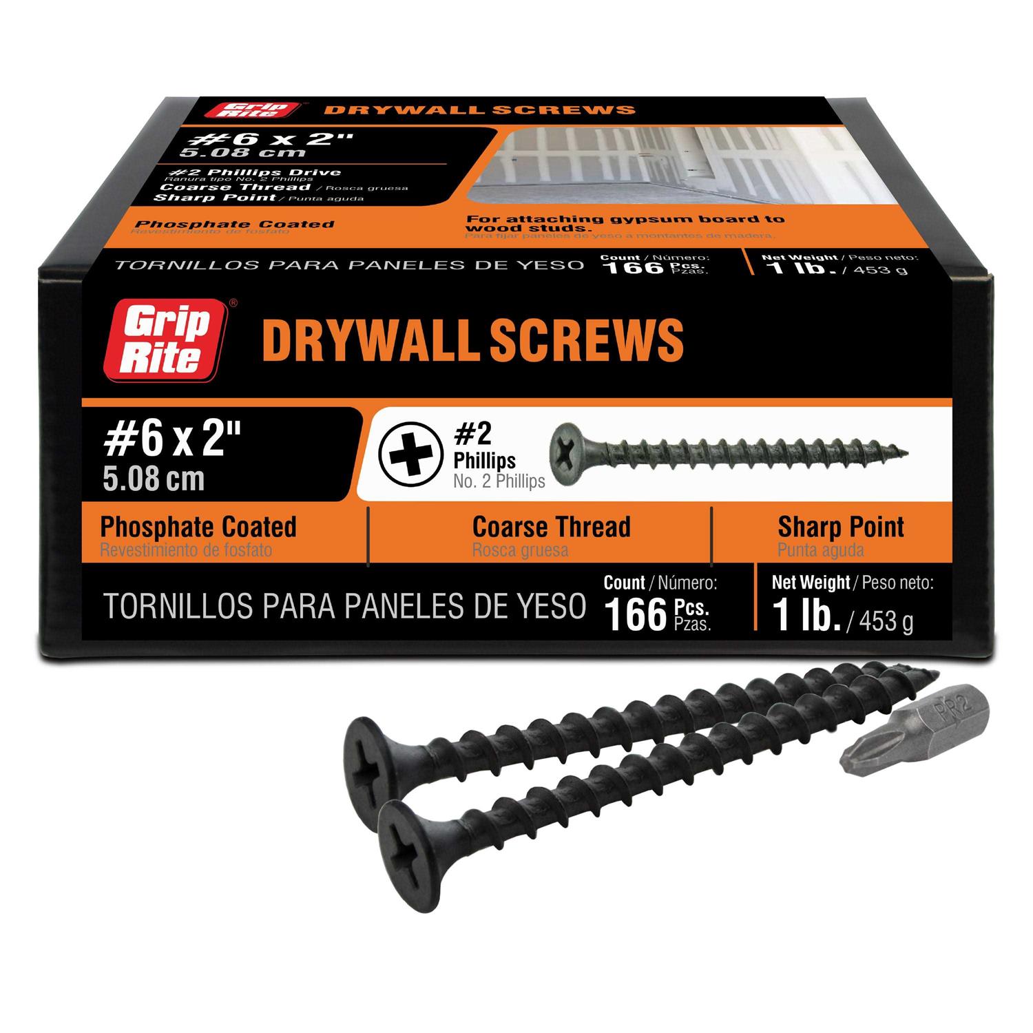 Grip-Rite 2CDWS1 Phillips Drywall Screws, Steel, 2 inch