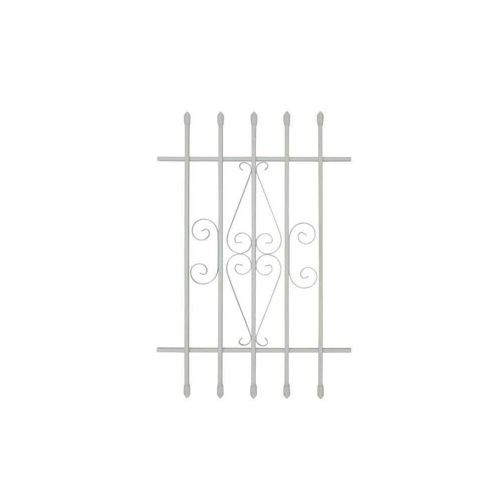 The 24 in. x 36 in. white, Spear Point Window Bar is engineered from 1/2 in. welded tubular steel for strength and added security against forced entry. The white powder coat finish adds beauty and weather durability. Several color matched mounting brackets are available. (Sold Separately) Choose from 3 in. projection brackets, flush-mount brackets and inside window frame mount brackets. Mounting bracket sets includes 3 in. non-reversing safety screws to complete the installation process. Quick Release accessory is required by fire code to meet designated escape window regulations. Color: Powder Coated White.