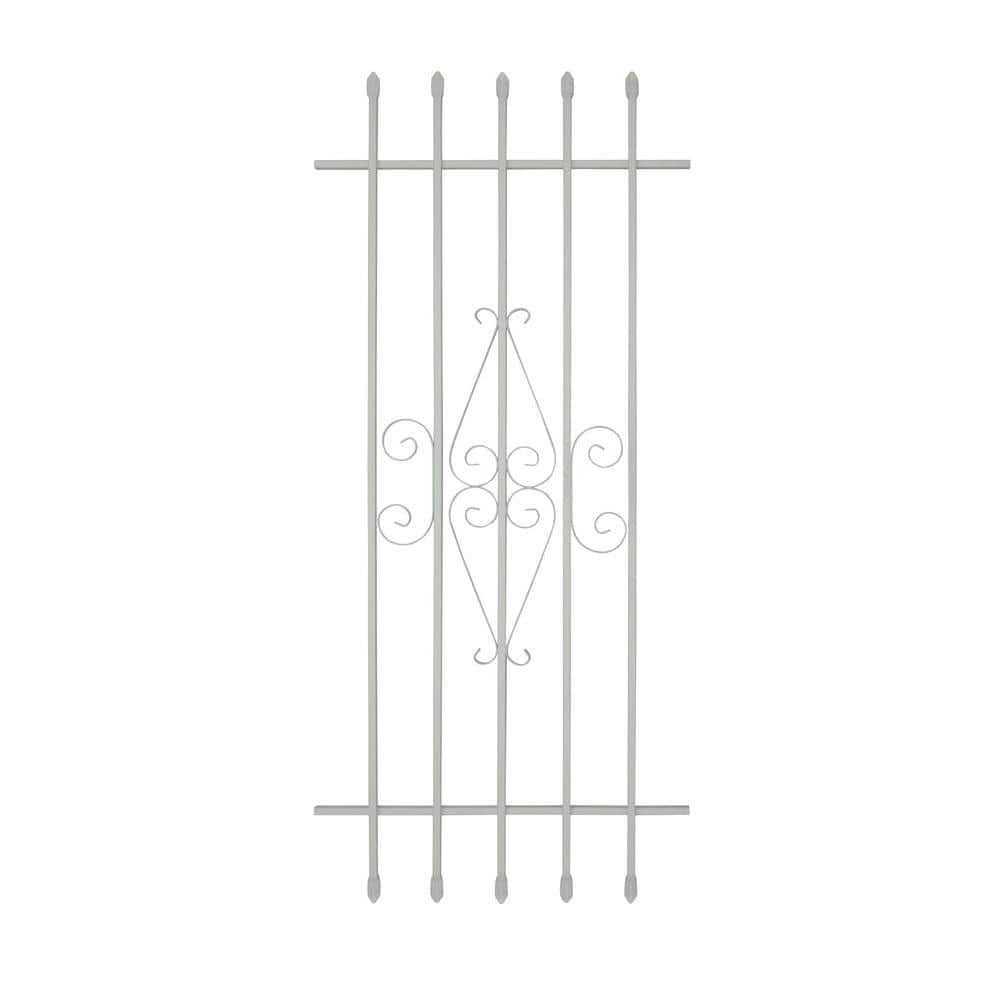 The 24 in. x 54 in. white, Spear Point Window Bar is engineered from 1/2 in. welded tubular steel for strength and added security against forced entry. The white powder coat finish adds beauty and weather durability. Several color matched mounting brackets are available. (Sold Separately) Choose from 3 in. projection brackets, flush-mount brackets and inside window frame mount brackets. Mounting bracket sets includes 3 in. non-reversing safety screws to complete the installation process. Quick Release accessory is required by fire code to meet designated escape window regulations. Color: Powder Coated White.