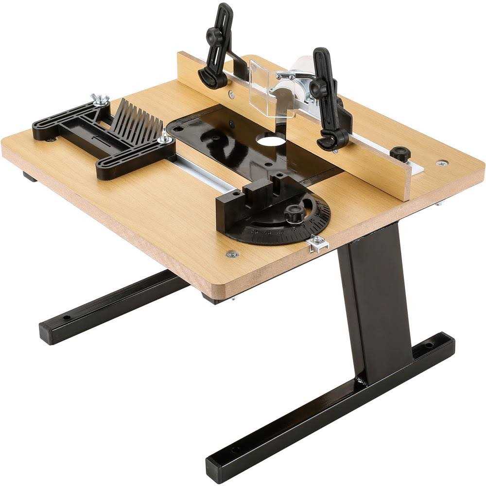 - This router table comes equipped with many features of a full-sized router table, but in a compact size.