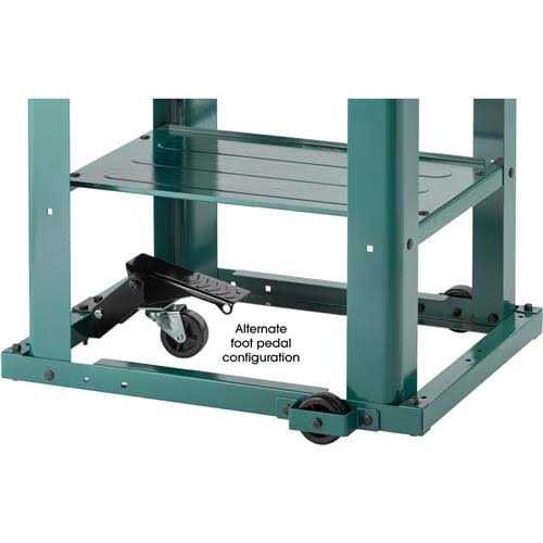 T33204 Mobile Machine Stand A stable and strong tool stand for the heaviest bench tools. Constructed of heavy gauge steel, this table was built for heavy loads. Place your benchtop planer on this table and instantly transform the space into dedicated workstation. The easy to maneuver mobile base includes a foot pedal that can be mounted on the inside to prevent trip hazard or mounted on the outside for convenient access. Built-in shelf supports allow for mounting a shelf if desired. The T33204 manual was written by our U.S. based Technical Documentation Department and is packed with useful information. The complete and easy-to-read manual makes it easier to assemble and maintain your machine stand. SPECIFICATIONS: Maximum weight capacity: 300 lbs. Overall dimensions: 21″ W x 24″ L x 29-1/2″ H Note: Do not mount machines with high centers of gravity such as table-top drill presses or mortising machines on this stand. Maximum weight capacity: 300 lbs. Overall dimensions: 21″ W x 24″ L x 29-1/2″ H.