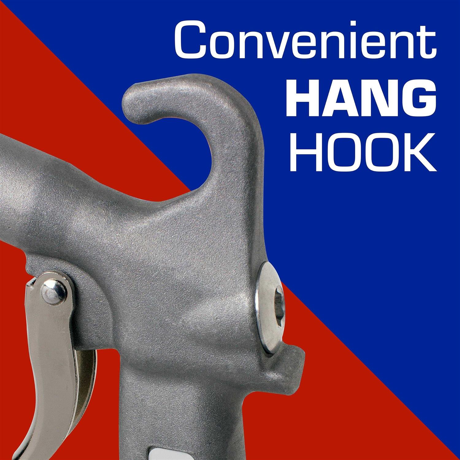 Clean Hard-to-Reach Areas with the Long John 12 inch Extended Air GunThe perfect tool for cleaning inaccessible areas the Guardair Long John 12 inch Extended Air Gun makes quick work of blowing floor debris cleaning masonry forms tanks ovens molds rafters machinery and storage areas. Constructed of durable aluminum the air gun is built to last. A comfortable pistol-grip body style matched with an ergonomically designed grip reduces user fatigue while adding super-comfortable handling.Outfitted with a Venturi nozzle the Long John 12 inch extended air gun delivers 100 more than conventional air guns. With a 12-inch nozzle the air gun is extremely maneuverable and easy to use. A convenient built-in hanger provides easy storage when not in use. Features standard 1/4-inch inlet size and 1/8-inch F NPT outlet size for no-hassle connections and fast operations wherever duty calls.