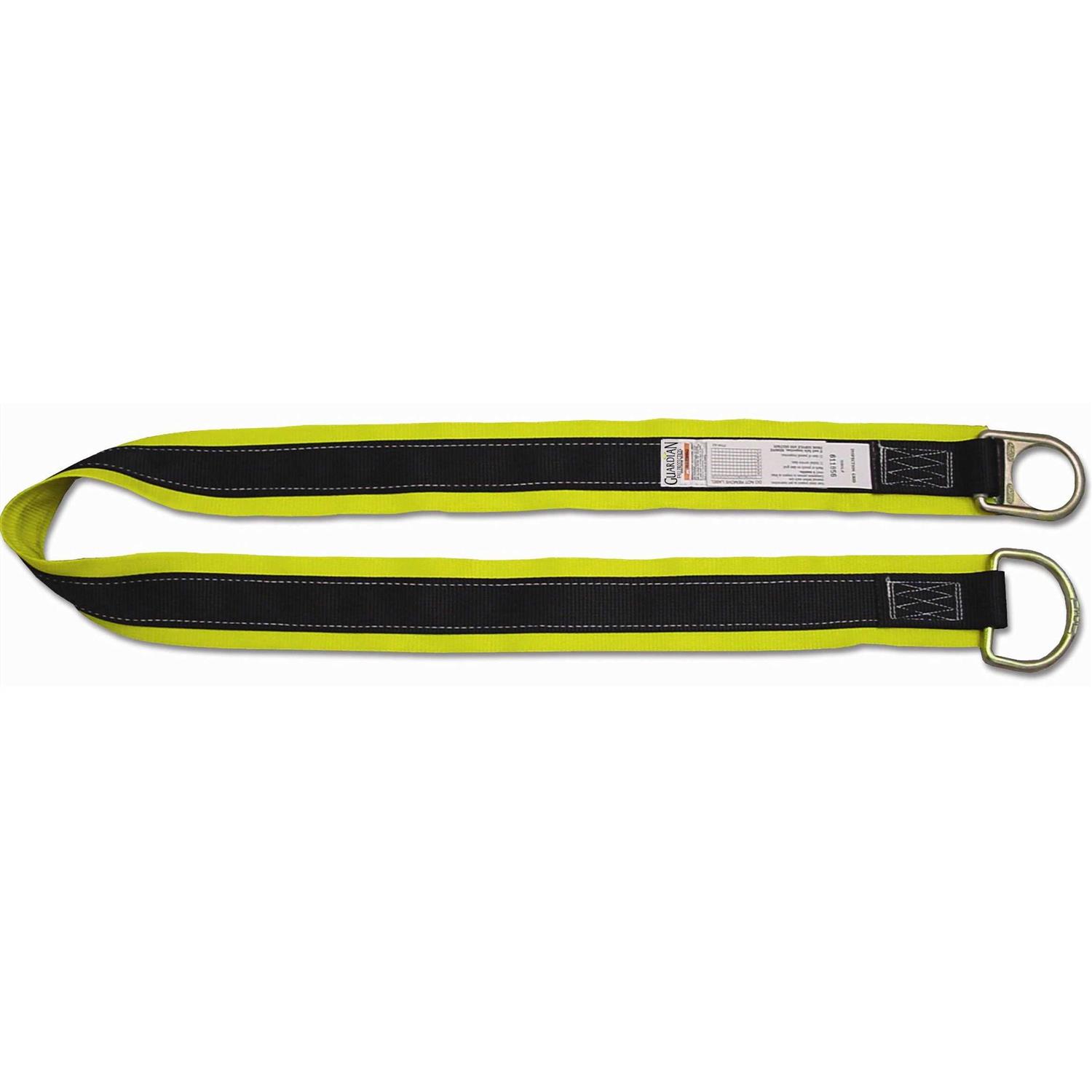 The Guardian Fall Protection premium cross arm straps are twice as durable with dual enforced webbing and heavy duty stitching. The heavy duty wear pad protects the structural webbing against abrasion and snags. Each strap provides a large D-ring and standard size D-ring for pass-thru, which increases the versatility of length adjustment. To shorten the anchorage connector, simply wrap the webbing around the anchorage and pass through the large D-ring. This version of the product is 3 Ft. in length.