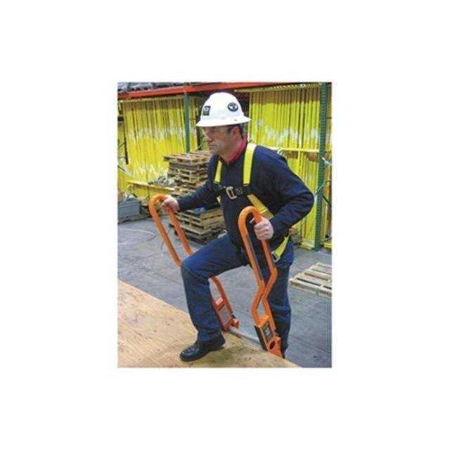 Requires no tools drilling or bolting to hold it securely in place. Aluminum design keeps handles from getting hot in the sun. Simple to use knob tightens by hand without scratching or damaging ladder. Cushioned bumper pads help to protect the eaves of the roof. Added hand grips for easier usage. Safety latch prevents unit from slipping off ladder. Complies with OSHA standard 1926.502 b3 1926.1053 b1 and ANSI standard 14.2 section 8.3.3.