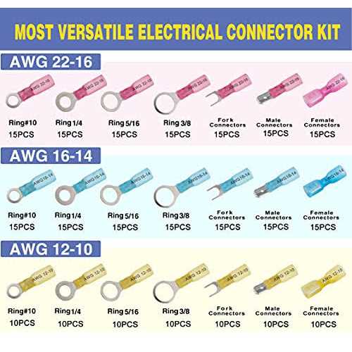 Make sure this fits by entering your model number. Heat Shrink Wire Connectors Kit Designed For Specific Scenarios-The kit includes heat shrink spade connectors,fork connectors and ring connectors.Provide time-saving and space-saving options for wiring projects. , UPC : 190372849274