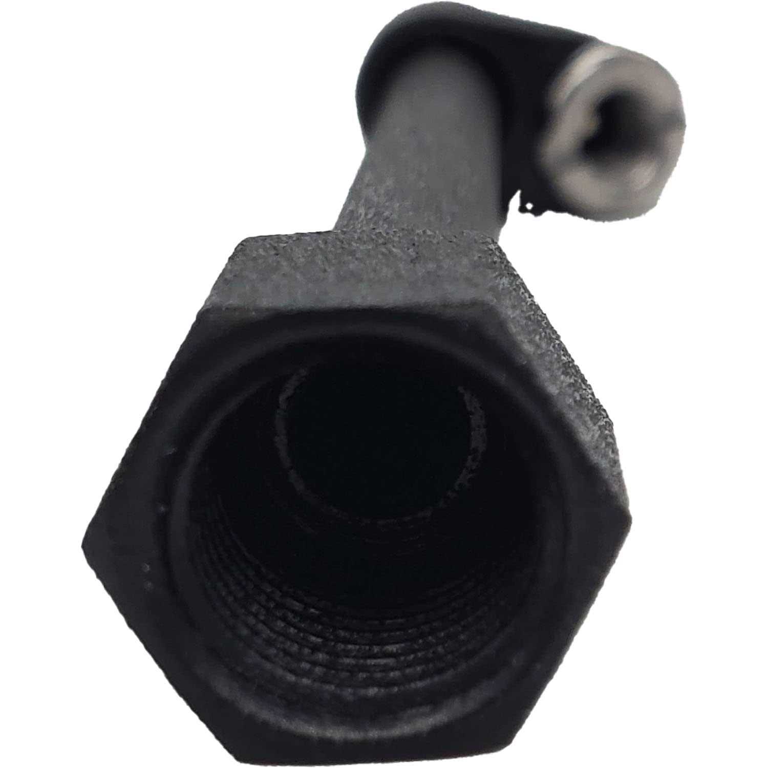 Straight on 30 degree reverse angle chuck with lock-on feature. 1/4″ NPT female thread. 6″ long. Black polyurethane coating. Great durability.