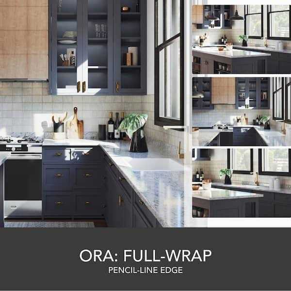 Enhance the look of any space with the sophistication and dramatic design of the Hampton Bay 6 ft. laminate countertop kit in White Ice Granite with Ora edge. This all-in-one kit includes a 3 in. loose backsplash 1 endcap kit and 1 build-up kit. The Ora laminate countertop kit is perfect for the DIY homeowner and includes everything you need to add style to any space. The sleek pencil-line edge provides the authentic look of stone.
