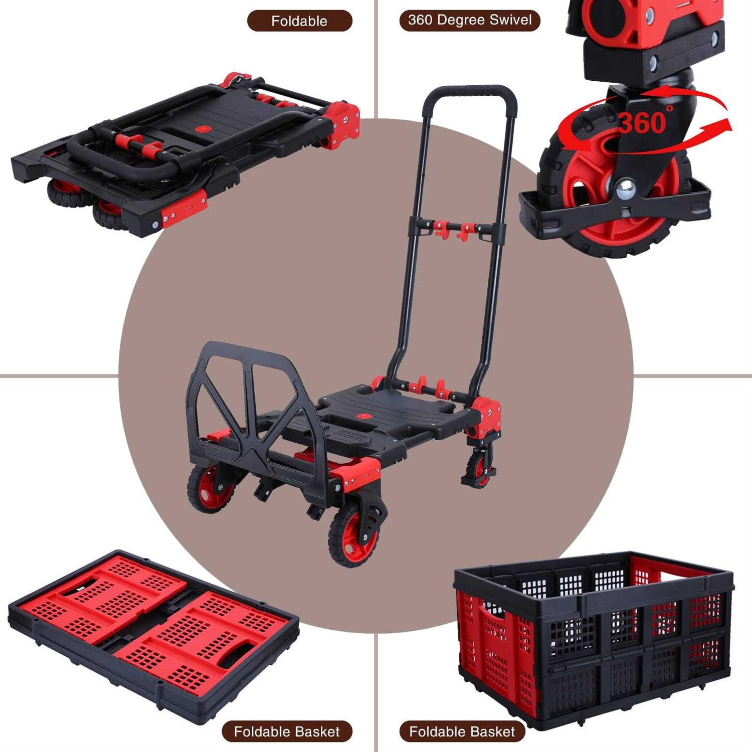 2-in-1Hand Truck Dolly Foldable with Folding Basket,330LBS Capacity Handtruck,Hand Truck Foldable Dolly with 4 Wheels,Push Cart Dolly with