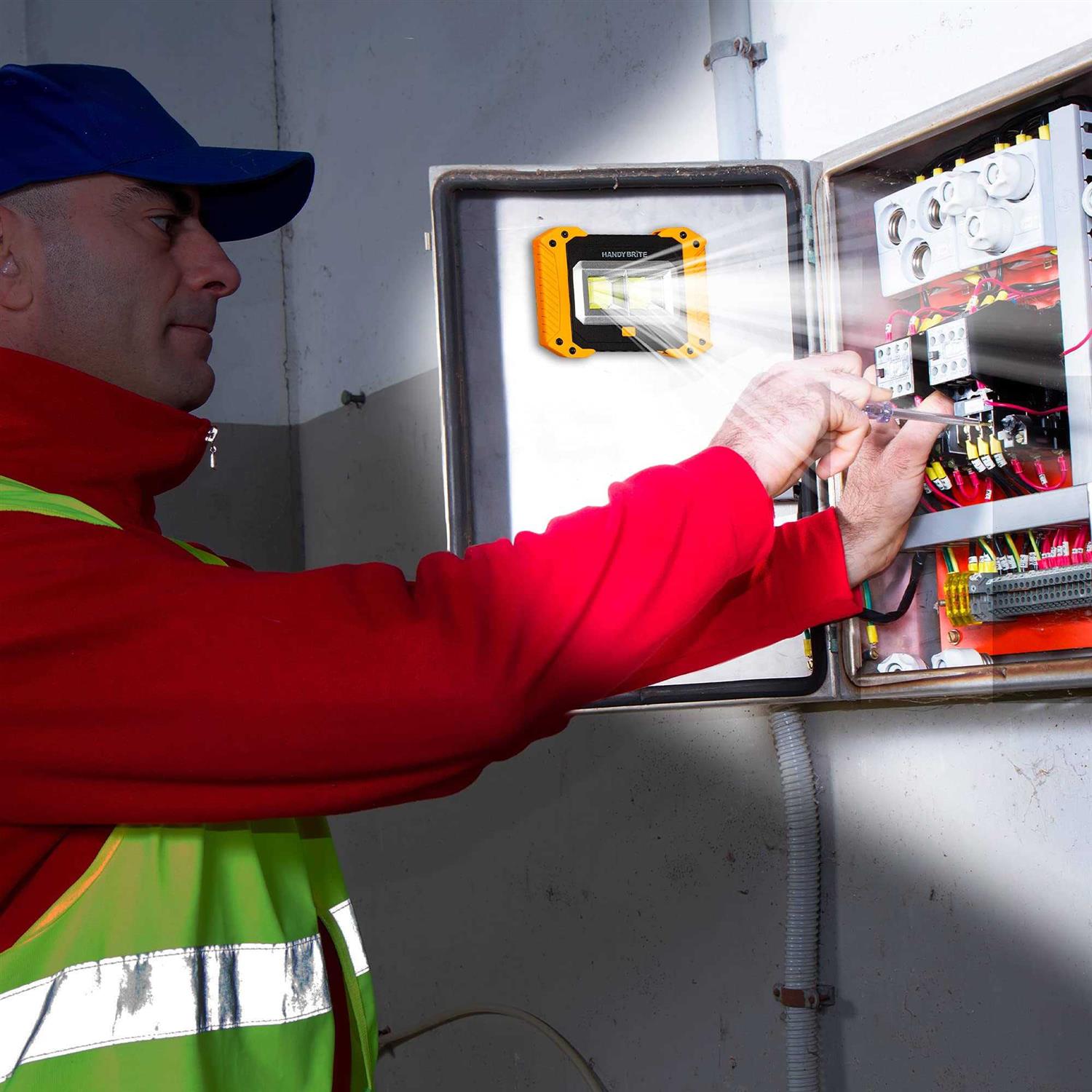 Handy Brite Work Light is compact and lightweight so you can bring it with you anywhere. Keep it in your tool box glove box or in your kitchen drawer. Handy Brite Work Light is made from high quality materials that make it weather proof durable and built to last. Handy Brite Work Light’s rubberized comfort grip is ergonomic and ensures a non-slip grip. Handy Brite Work Light is great for car repairs camping fishing hunting and more. Handy Brite Work Light is the ideal work light that brings ultra-bright light to any space.