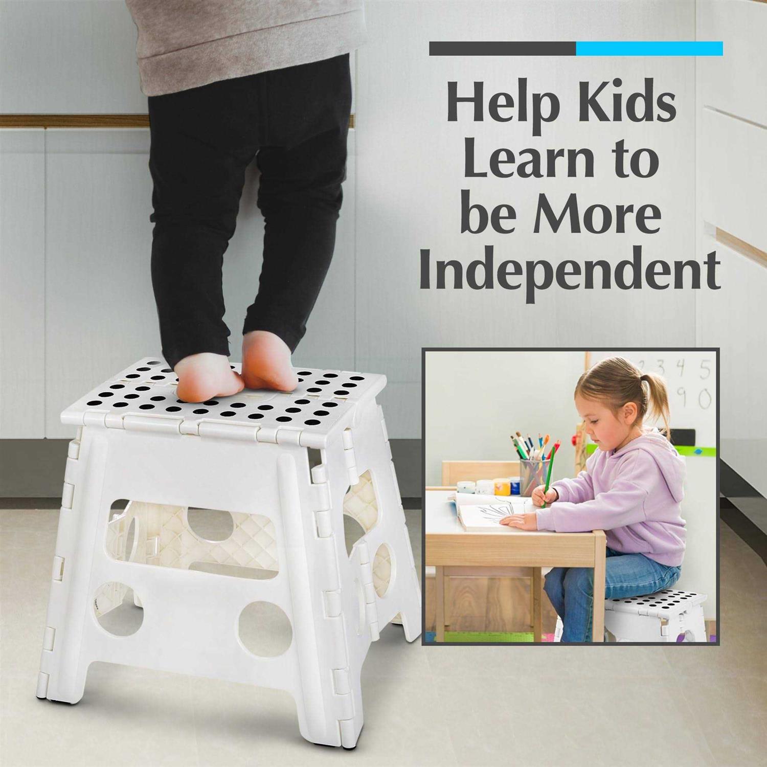 TEXTURED SURFACE: Unique dotted surface provides a safe grip and prevents both kids and adults from slipping. SAFETY CERTIFIED: Masirs’ Folding Step Stool features anti-skid foot pads; passes all ANSI III requirements. EASY TO USE: Opens effortlessly with one hand and folds flat releasing a handle for convenient carrying and storage. RELIABLE: Lightweight, durable and sturdy. STANDING HEIGHT 13″: Sized to give you the height you need; a perfect step up for the kitchen, bathroom, closets and all those hard-to-reach places. 1 TEXTURED SURFACE: Unique dotted surface provides a safe grip and prevents both kids and adults from slipping. SAFETY CERTIFIED: Masirs’ Folding Step Stool features anti-skid foot pads; passes all ANSI III requirements. EASY TO USE: Opens effortlessly with one hand and folds flat releasing a handle for convenient carrying and storage. RELIABLE: Lightweight, durable and sturdy. STANDING HEIGHT 13″: Sized to give you the height you need; a perfect step up for the kitchen, bathroom, closets and all those hard-to-reach places.