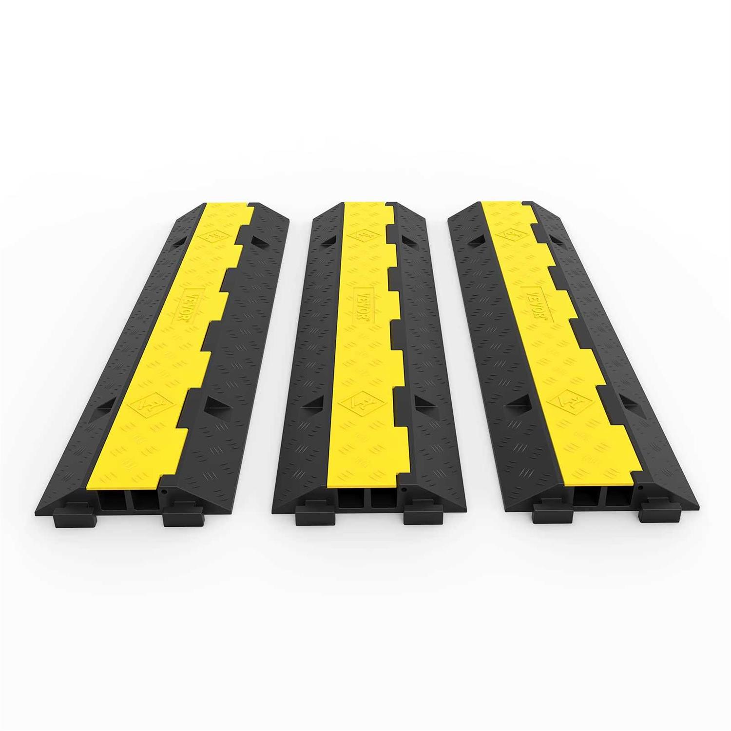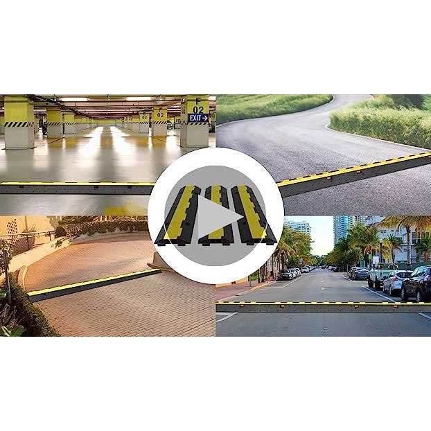 What’s more, the speed bump is ideal for slowing down the speed of cars to create a safe driving environment for roads, parking lots, etc. Max. Capacity: 4000 kg. CAPACITY Traditional black and yellow color provides greater visibility at night and in low light environments. The cable guard ramp incorporates a unique design into its appearance to capture the attention of passers-by-pass and drivers to slow down. 5kg load capacity ensures that you can drive your car on the ramp without affecting the cables running inside. Premium Non Slip Rubber Our cable protector cover is made of industrial grade rubber and PVC coating, waterproof, wear resistant and will not deform for long lasting use. Flip down design allows you to place or remove cables quickly and easily. Texture strips on the surface ensure vehicles pass through without slipping. The lower shock absorption has strong stability to control the speed of traffic without damaging cars or roads. Modular Interlocking Connection The modular design allows multiple gear bumps to be connected to cover longer cords. With the design, you can easily assemble it on the floor of your home or even outdoors. Besides, this feature gives you a DIY ambiance as you can either have a specialist connect the product for you or get a sense of self-pride and do it yourself. VERSATILE USE The cable ramp is perfect for indoor and outdoor, commercial and home, such as car parks, warehouses, concerts, hotels, stages, shopping malls, sports events, schools, communities and building places.