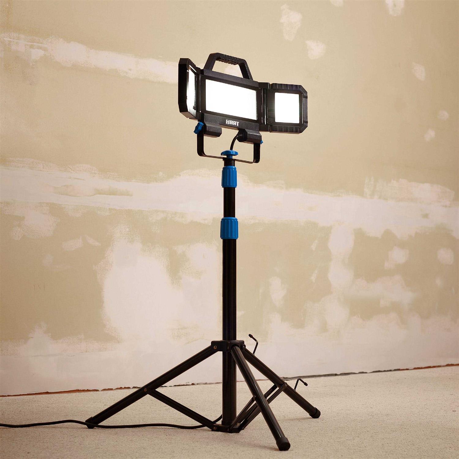 Hart LED 3-Head Adjustable Plug-In Work Light with Tripod, 7000 Lumens