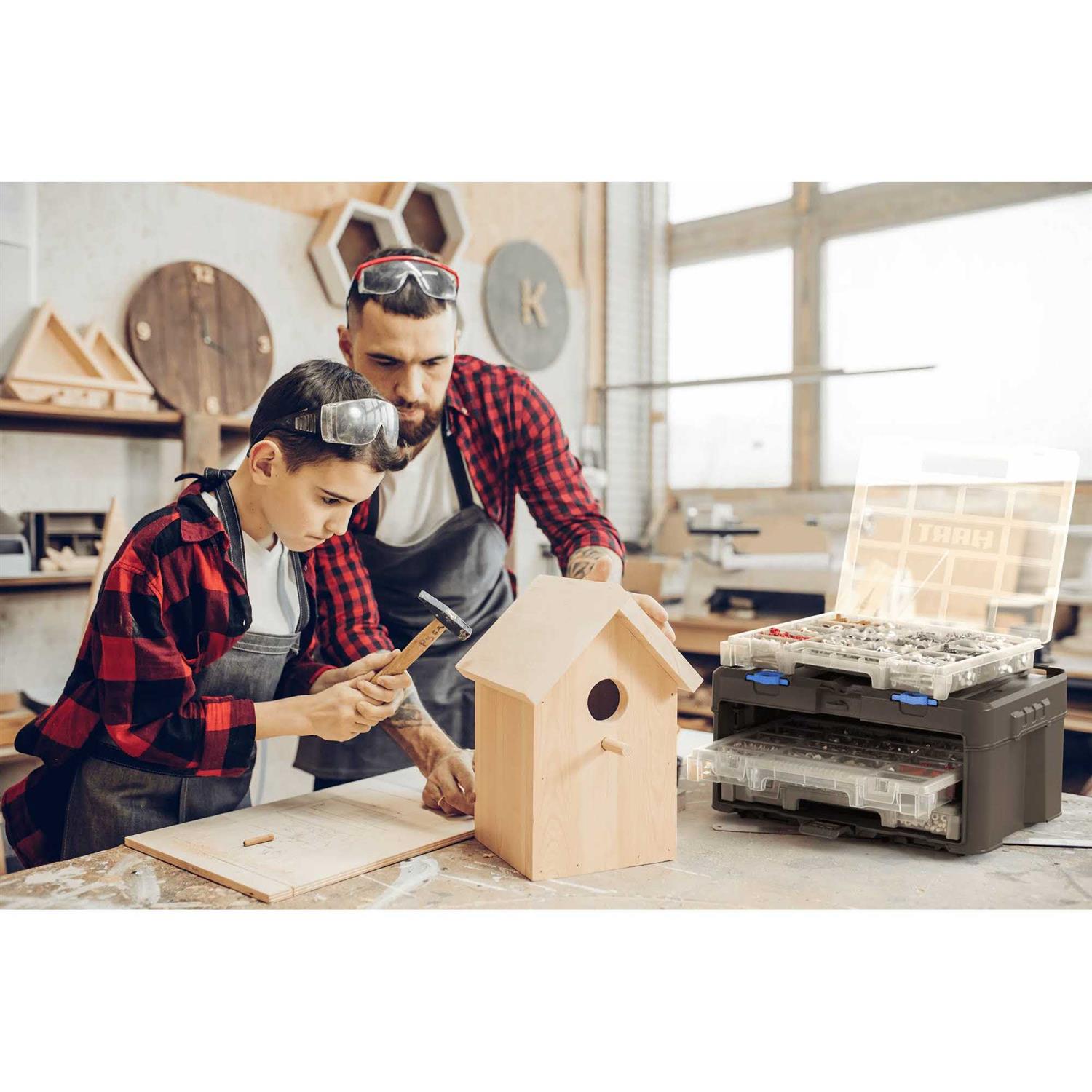 With 3 removable clear plastic containers . this HART SYSTEM 3-Set Organizer placement for your fasteners . screws . nuts . bolts . bits . and more. Also offers serious crafters and home DIY-ers alike a flexible way to organize . store and transport small-to-medium-sized items. Everything about this organizer is designed to give you maximum flexibility. Since you won’t always need all your items with you at the same time . this modular organizer gives you the option of taking either one organizer container or the whole storage unit to wherever you’re working. Each of the containers can be easily customized using the moveable dividers to create the spaces that suit your storage need best. HART STACK SYSTEM 3-Set Organizer is constructed of lightweight yet highly durable plastics that will keep your contents protected from the rigours of everyday usage. The HART STACK system 3-Set Organizer can also be easily assembled onto the HART STACK system . so you can take your small items securely from place to place.