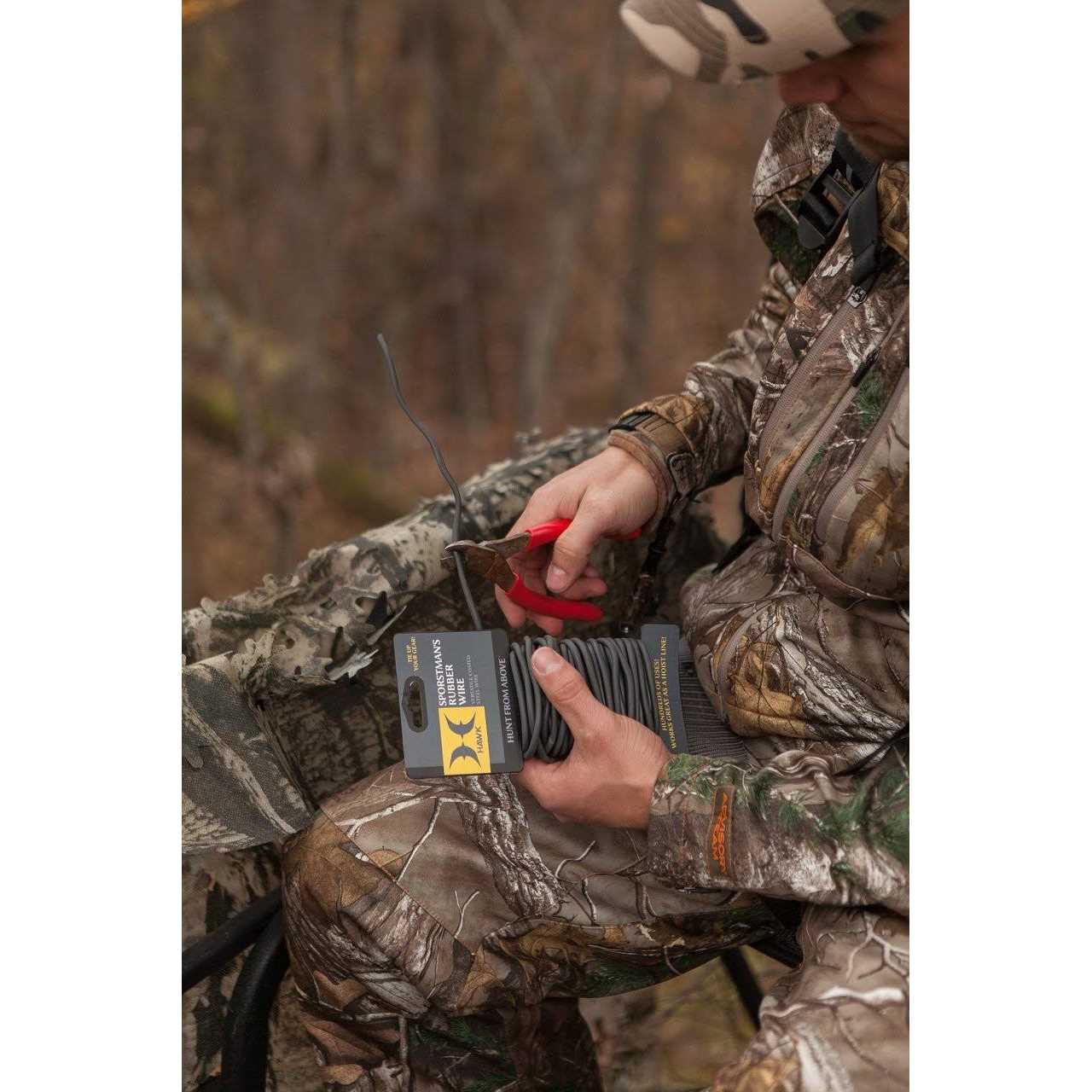 Durable steel wire encased in a tough rubber coating. A handy accessory with countless uses ranging from a tangle-free hoist rope to securing equipment on ATVs and boats to securing camo material on blinds. Rather than using rope and tying knots, use the Sportsman’s Rubber Wide to quickly and easily twist and secure. The 25-foot total length can lift up to 40 pounds, or can be cut to desired lengths for tying up gear.
