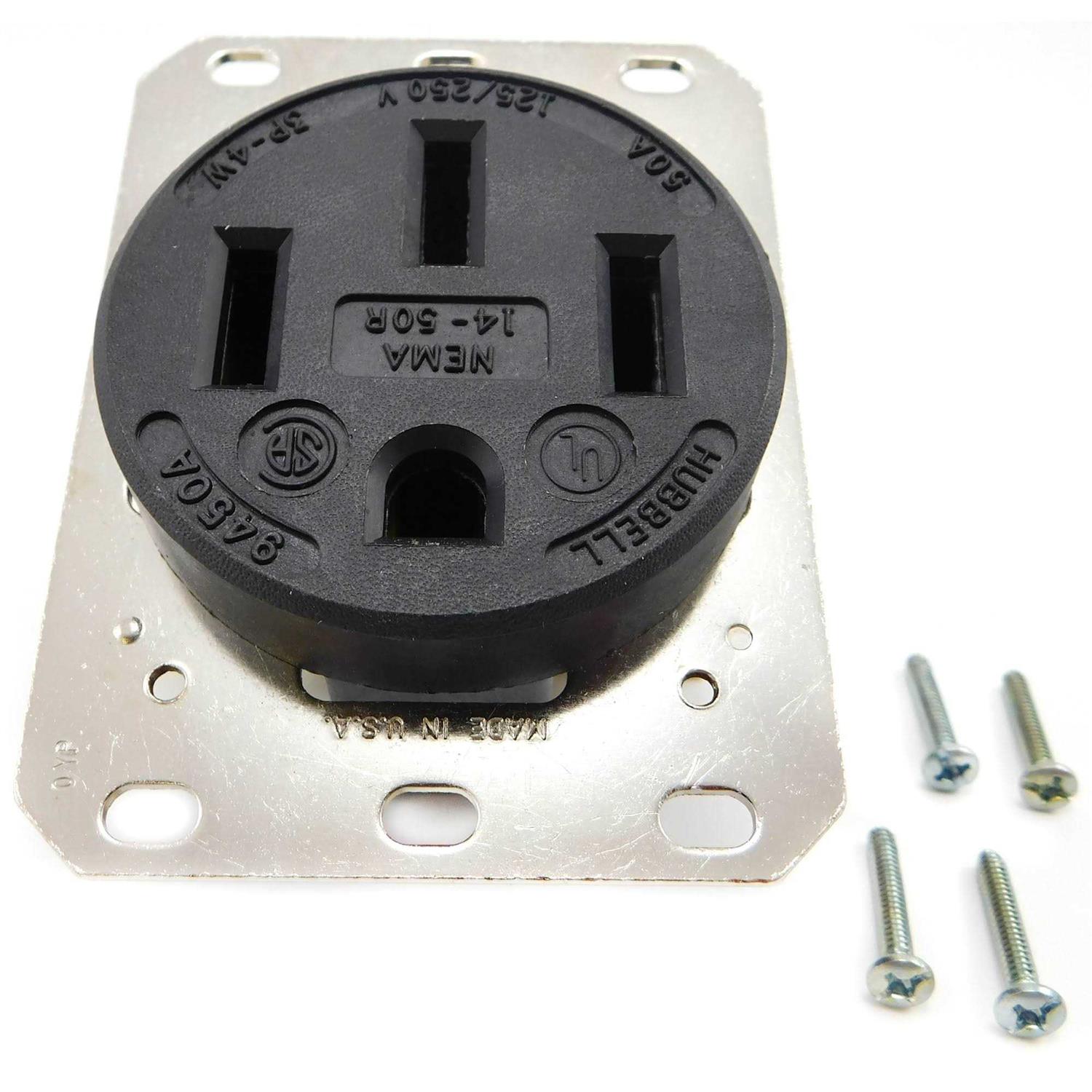 - Plugs and Receptacles 50 A, 14-50R, 125/250V AC, Number of Poles 3, Number of Wires 4, Tamper Resistant No, Weather Resistant