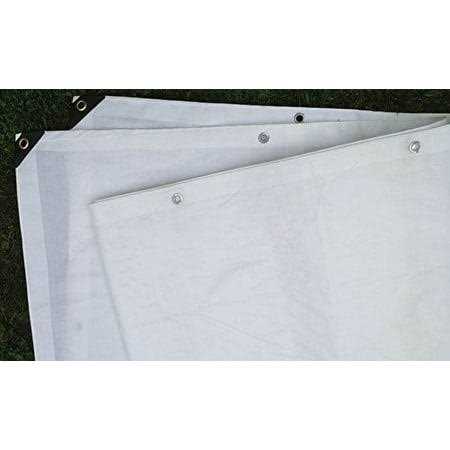 Harpster Tarps Heavy Duty White Poly Tarps by Tarps Direct are waterproof, mildew, tear and acid resistant. The polyethylene fabric weighs 6 oz. per square foot and is 11-12 Mil thick. It is laminated white on both sides. Grommets are spaced approximately every 18 inches and in the reinforced corners, for plenty of tie down options. Our white tarps are perfect for canopy tops because they are translucent (allows some light through). Harpster Tarps Heavy Duty White Tarp is perfect for covering cars, boats, and firewood. It has many applications including camping, hunting, fishing, beach trips, picnics, RV trips, outdoor movie screens and much more. UV resistant makes this tarp perfect for outdoor and indoor use.