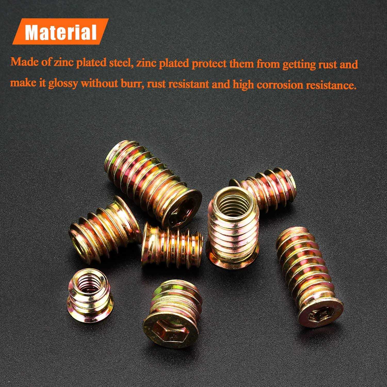HELIFOUNER 1/4-20 5/16-18 Threaded Inserts Wood Inserts Steel Threaded Inserts for Wood Furniture Screw