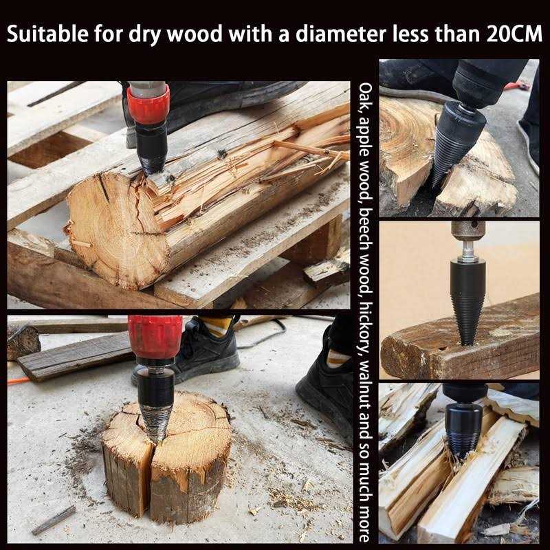 High Quality Drill Bit for Wood:1. Made of high quality high carbon steel.2. All kinds of soft and hard wood can be opened.3. Quick separation of logs and increased productivity.4. Titanium coating to reduce friction and heat by heat treatment.5. It’s exceptionally strong, impact resistant and wear resistant. Specification:Type: Core Drill Bit- Material: high carbon steel- Application: Wood drilling- Used for: Hammer Drill- Drill Type : rhinestone round,hex handle electric hammer drill bit, round handle electric hammer drill bit, square handle electric hammer drill bit- Package Included:1 x Wood Splitter Drill3 x Handles ( Square Handle+Round Handle+Hex Shank )Feature:-The product is integrally formed without splicing and is more sturdy that is more comfortable to use.-Hardening treatment, high hardness precision, wear resistance, durable to use.-Grooved anti-slip design for long hours of work, making work feels comfortable.-You can easily spill large firewood, wood at home, make it easy work, save energy and time.-This drill is suitable for a wide range of use, whether it is family, camping, or farm, can be easily used.- Notice:1. Size in 1-3cm size difference is in normal range due to manual measurement.2. Color may have a little difference due to lights, screens, etc.3. SUITABLE FOR DRY WOOD4. The 32MM Firewood Log Splitter is suitable for drilling rigs above 750w5. The 42MM Firewood Log Splitter is suitable for drilling rigs above 1000w6. Be sure to start separating from the edge of the wood.- Do not start separating from the middle of the wood as it will get stuck. The product is integrally formed without splicing and is more sturdy that is more comfortable to use. Hardening treatment, high hardness precision, wear resistance, durable to use. Grooved anti-slip design for long hours of work, making work feels comfortable. You can easily spill large firewood, wood at home, make it easy work, save energy and time. This drill is suitable for a wide range of use, whether it is family, camping, or farm, can be easily used.