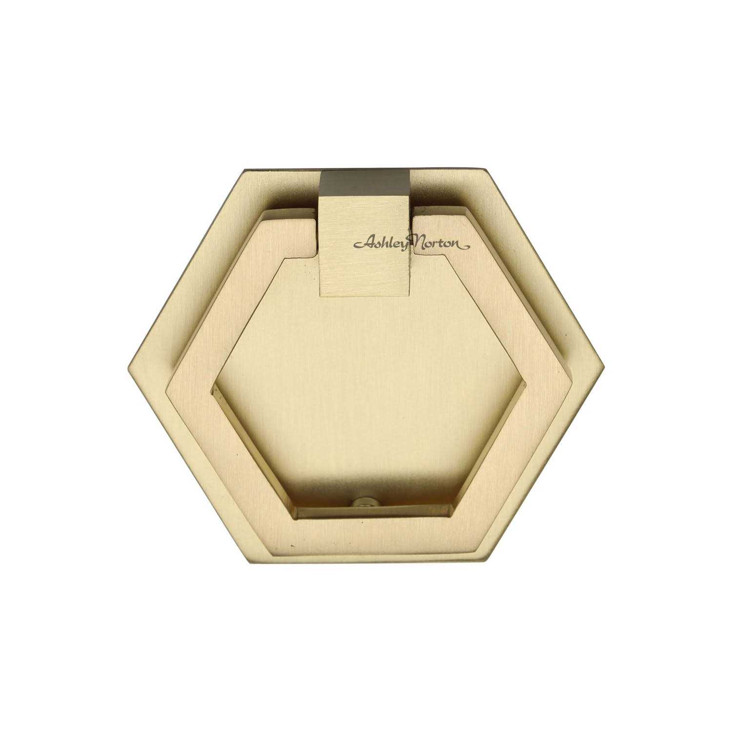 - 2 3/8″ Hex Cabinet Ring Pull on Backplate in Satin Brass