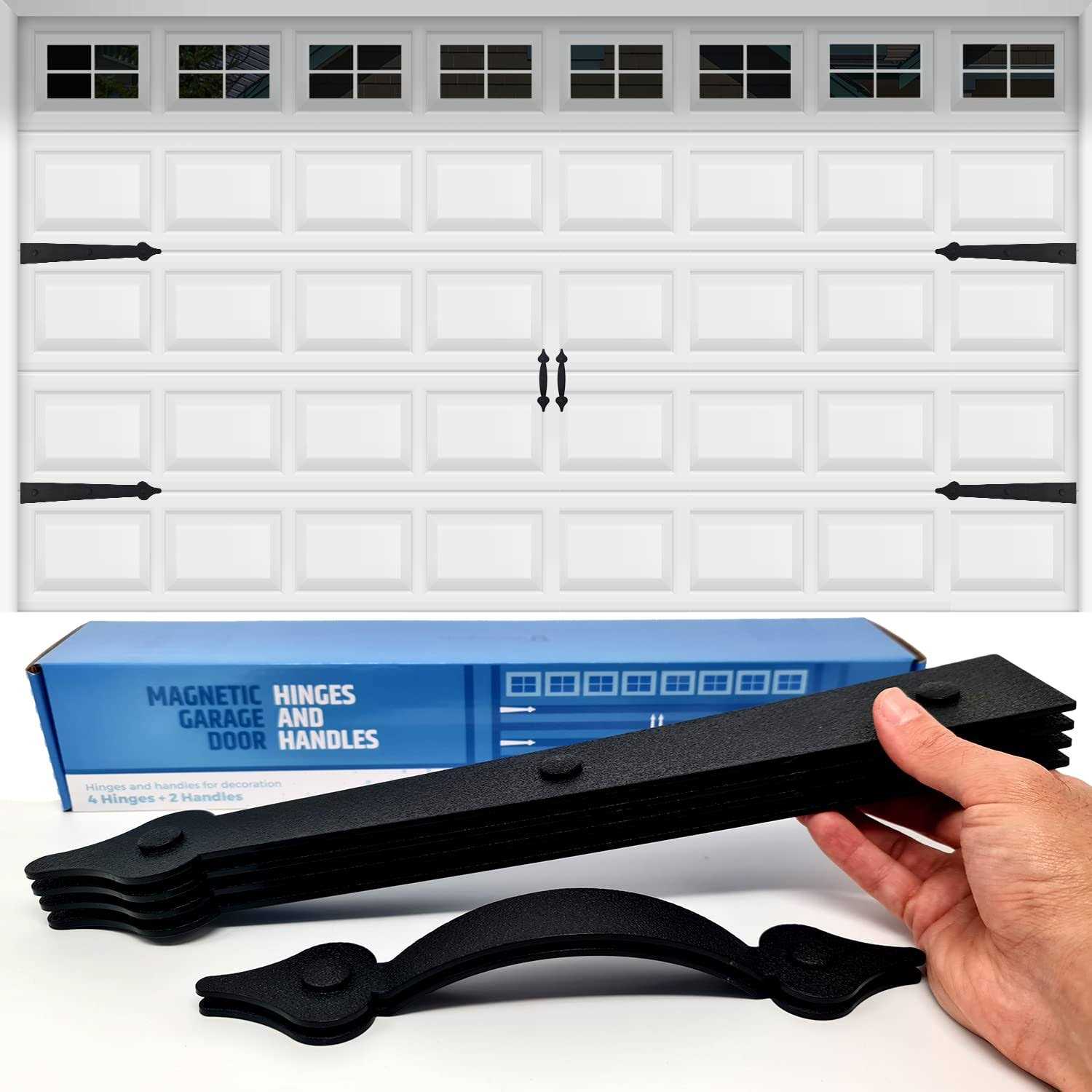 HMmagnets Premium Quality & Strong Magnetic Garage Door Decorative Hardware – Set of 2 Handles + 4 Hinges – Faux Garage Door Accents Kit for Curb