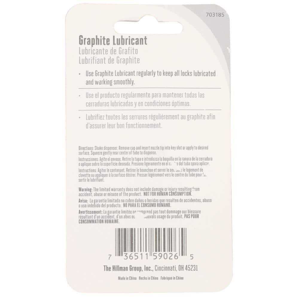 Hillman Graphite Powdered Lubricant is designed to keep locks working smoothly. It protects against corrosion, sticking and dirt build-up. It provides a thin layer of air and water where two surfaces rub together. This Hillman graphite lubricant is ideal for household or automotive needs and can be safely used on wood, metal, plastic or rubber. It easily lubricates lock mechanisms, hinges, tools, guns and many other things in all temperatures for year-round protection. This graphite powder lubricant comes in a convenient dispenser tube with a tapered nozzle tip and black closure cap.