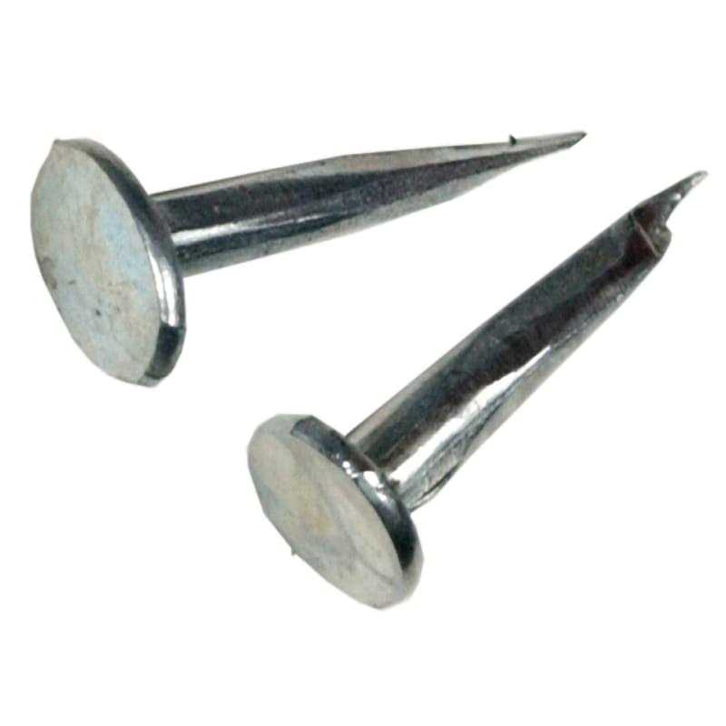 - A short sharp-pointed nail, with a flat broad head