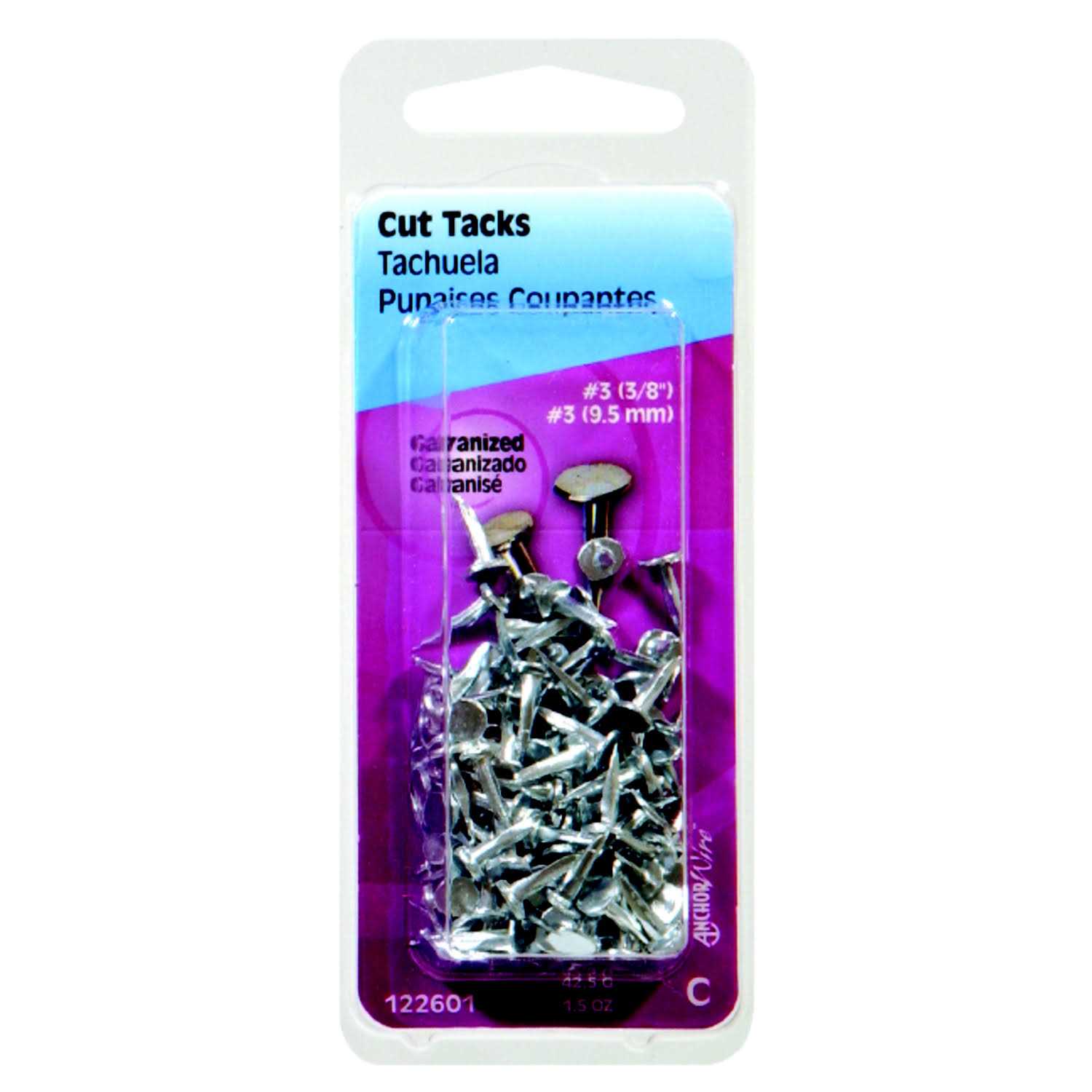 A short tack with relatively large head and sharp point. Use to fasten upholstery and carpet or perform other light fastening jobs. These blued tacks have a single point design.