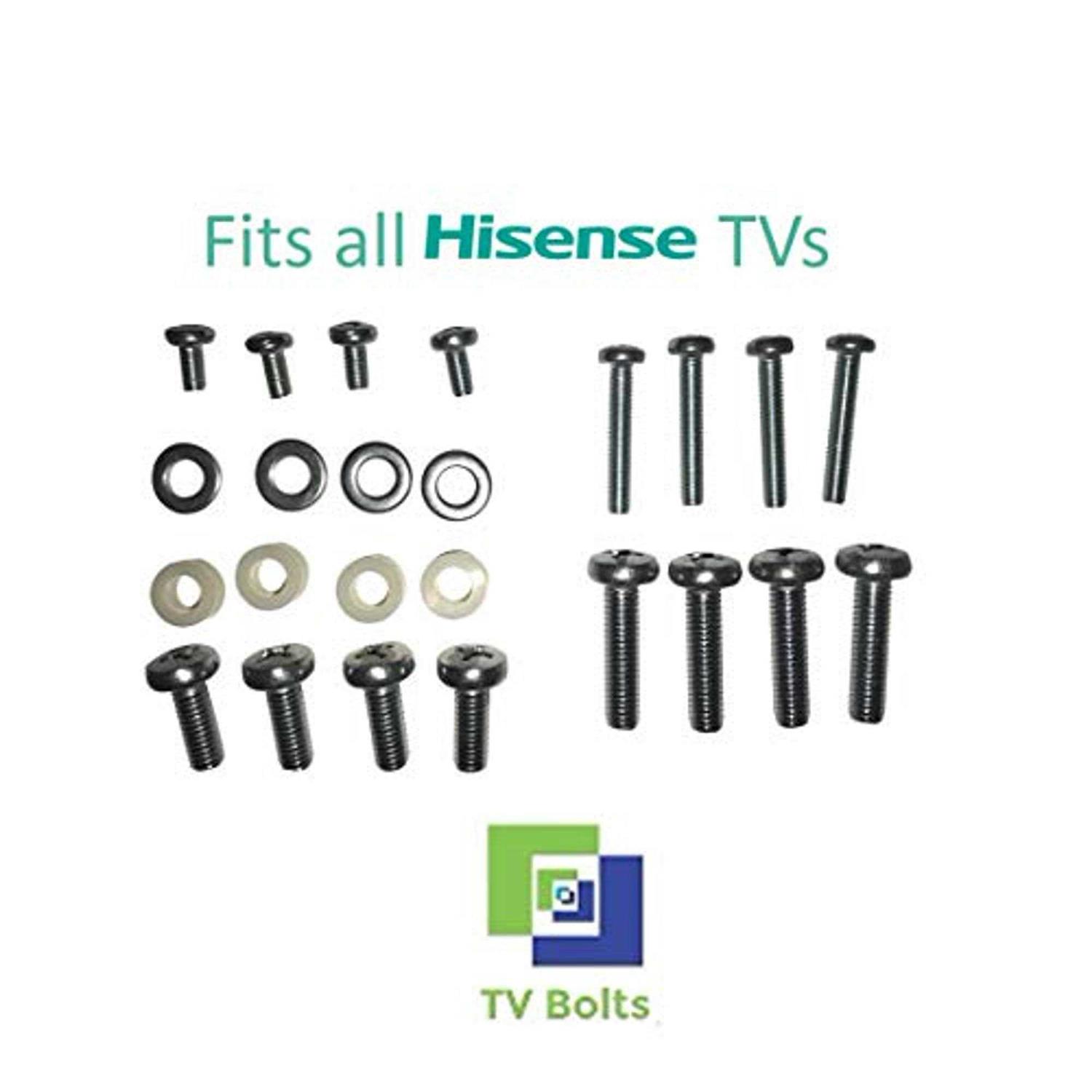 Set of screws/ bolts and washers to wall mount any HiSense flatscreen TV Zinc plated steel and coated with electrostatic discharge preventive Kit has washers and spacers to ensure you have what you need Meets ASTM, ISO, ANSI and DIN specs. Already have the mount but no screws for the back of your TV? Don’t know what size you need? Rated for TV wall mounting with zinc plating and coated with electrostatic discharge preventive.