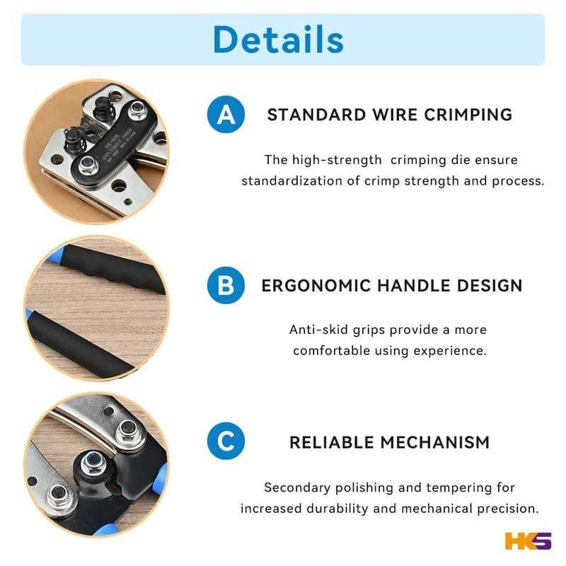 Crimping range: 6-50mm2.( The crimping pliers are sturdy and of high quality. Lightweight and easy to carry crimping tool.