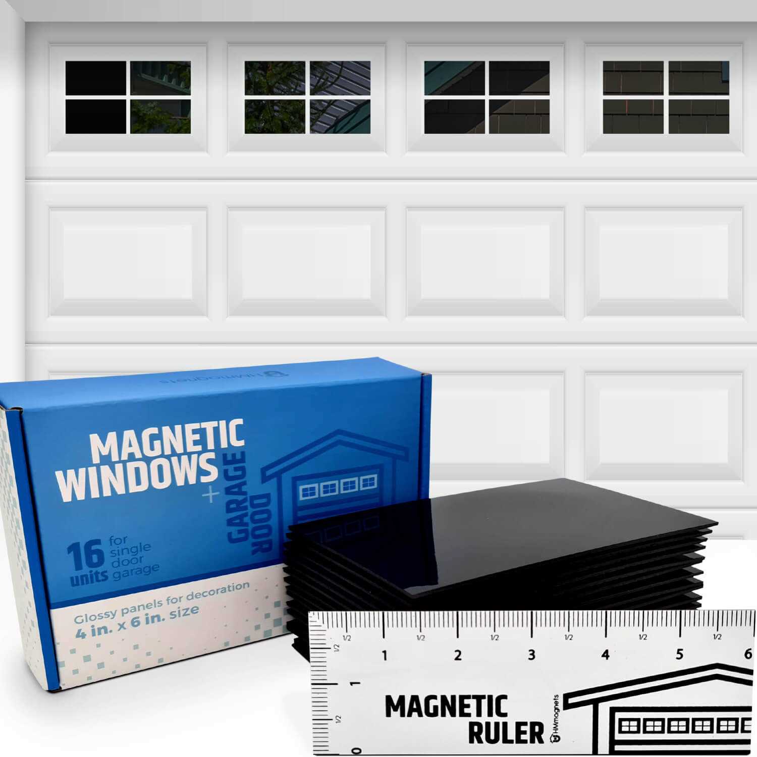 HMmagnets Strong & Glossy Magnetic Garage Door Windows – Fits 1 Car Garage – Looks Like Real Window Panels/Faux Panes – Decorative Hardware Kit – Easy