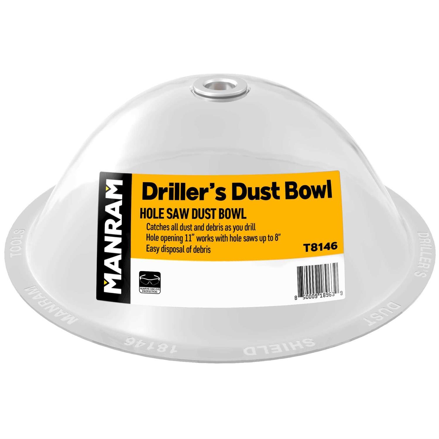 - Universal – Dust collector bowl is compatible with power tools and fits most drills and hole saws. Hole opening 11″ works with hole saws up to 8″.