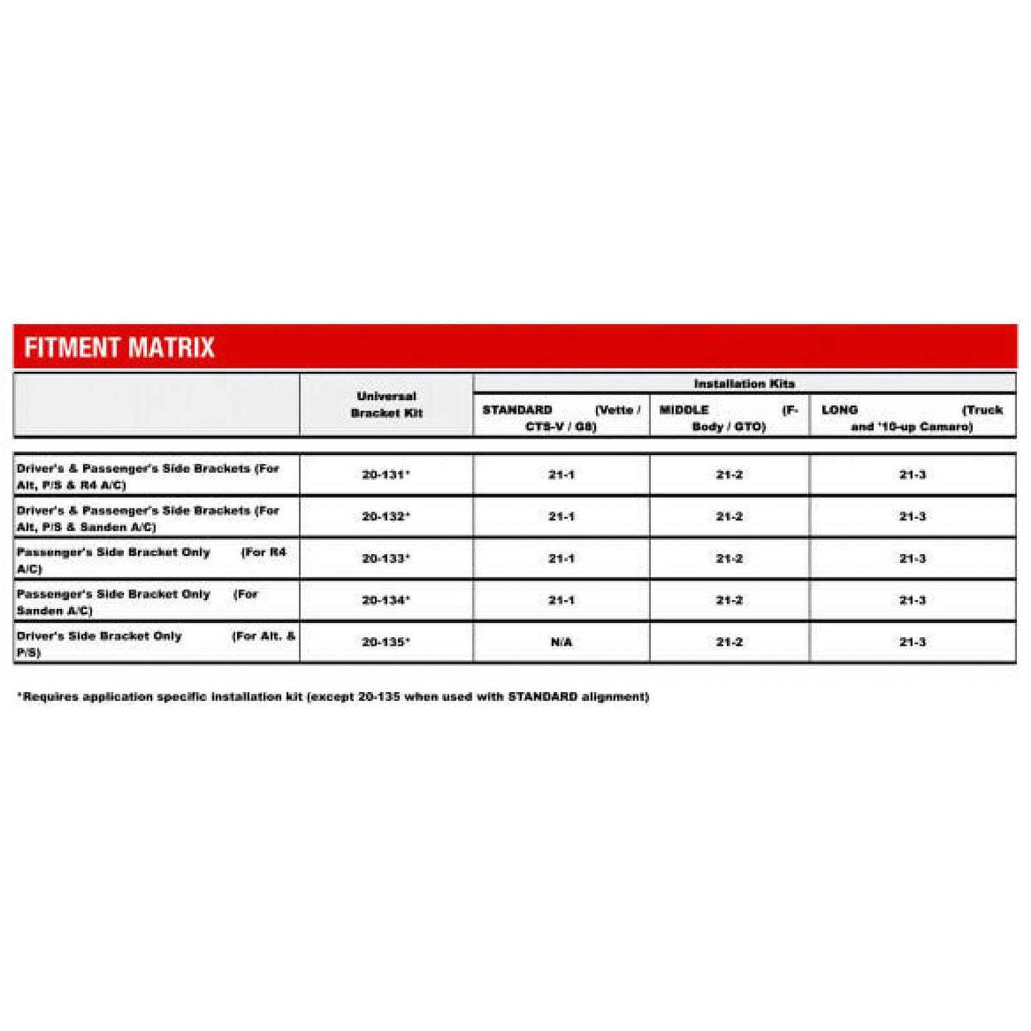 • Brackets were designed to deliver a factory style appearance, correct belt alignment and factory stability