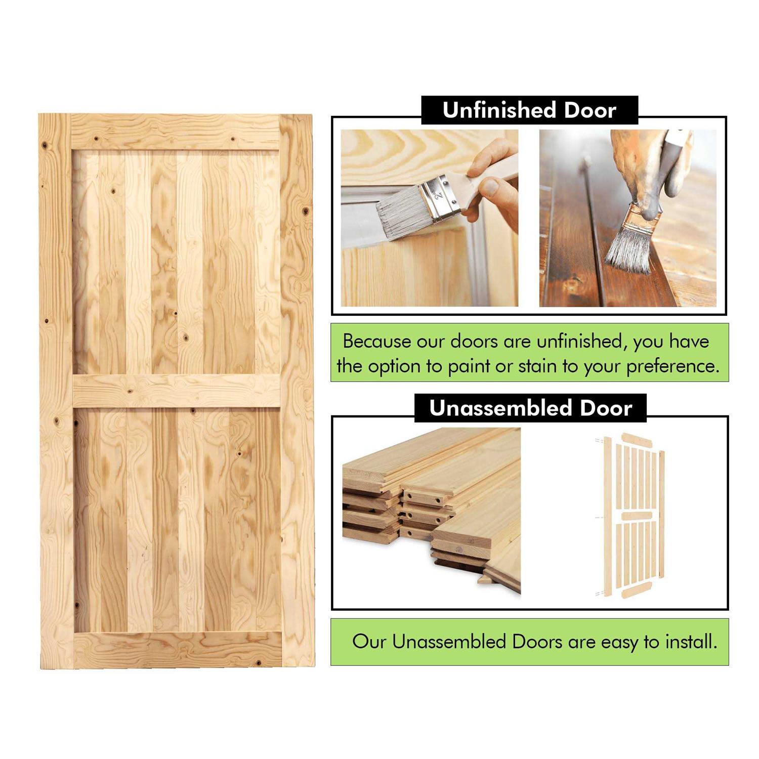 Let’s get those doors on track, HOMACER is in town. You don’t have to search anywhere else for the best sliding hardware you can get. HOMACER aims to provide the best value products and services to save your time and money when you think of installing barn doors at your home! Pre-install Notice: This door requires two people assemble, it is not traditional one piece barn door. Pilot holes on the door are all pre-drilled and cut. Wooden panel are able to junction with each other for tight fit. It is unfinished barn door, you can easily paint it as you wish. Please leave the door dry for at least 24 hours. The barn door will work perfectly with our sliding barn door hardware kit and door handles. The bottom of the door had a pre-cut groove to fit with the floor guide that prevents the door from swinging back and forth.